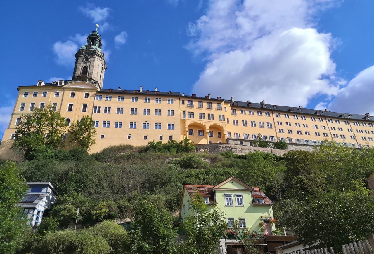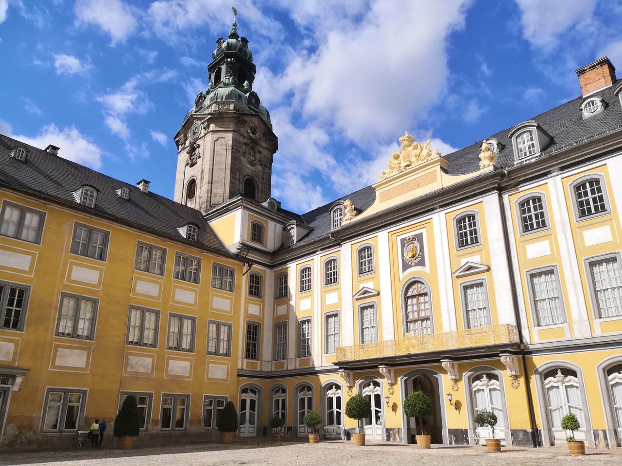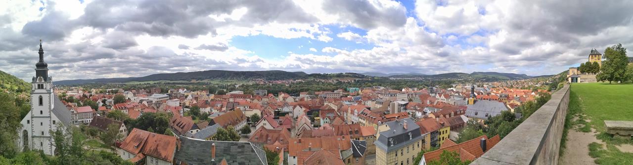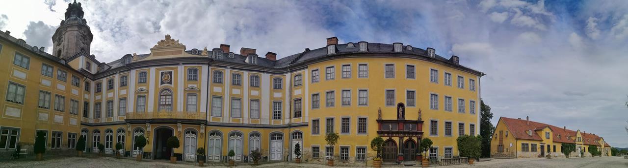 Höhepunkt bei unserer Besichtigung von Rudolstadt ist das Barockschloss Heidecksburg, die ehemalige Residenz der Fürsten von und zu Schwarzburg-Rudolstadt. Das Schloss ist aus dem Saale-Tal weithin sichtbar, weil es die Altstadt um mehr als 60 Meter überragt.