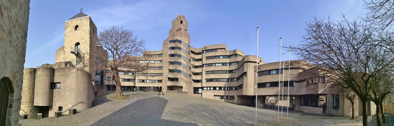 Am Ende unserer Wanderung zwischen Bensberg und Bergisch Gladbach schauen wir uns die Innenstadt von Bensberg an, die von zwei äußerst markanten Bauten überragt wird: Dem historischen Schloss Bensberg und dem architektonisch beeindruckenden Rathaus, das in den Resten der ehemaligen Burg Bensberg errichtet wurde.