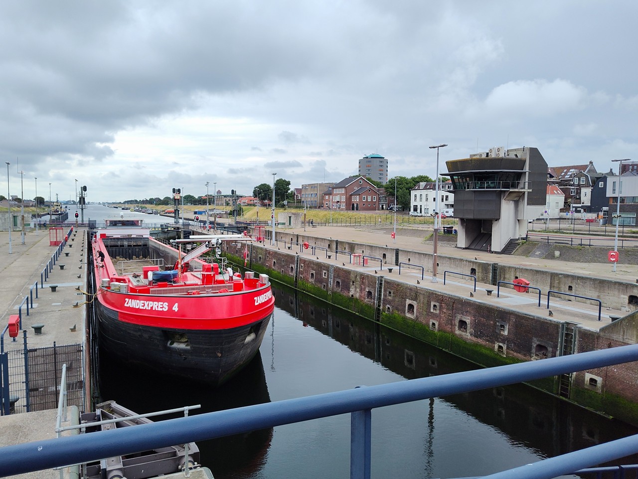 Die älteren Stadtteile von Ijmuiden wirken heute etwas heruntergekommen, die jüngeren Teile haben den Charme einer sozialistischen Musterstadt – nur nicht aus DDR-Platte, sondern aus rotbraunem Backstein.Wir stehen mit dem Wohnmobil auf einem kleinen kostenlosen Parkplatz neben der Fähre direkt am Nordseekanal. Immer wieder ziehen riesige Frachtschiffe an uns vorüber. Später mache ich mich mit dem Fahrrad auf, um die Stadt und den Hafen mit seiner riesigen Schleusenanlage zu erkunden.