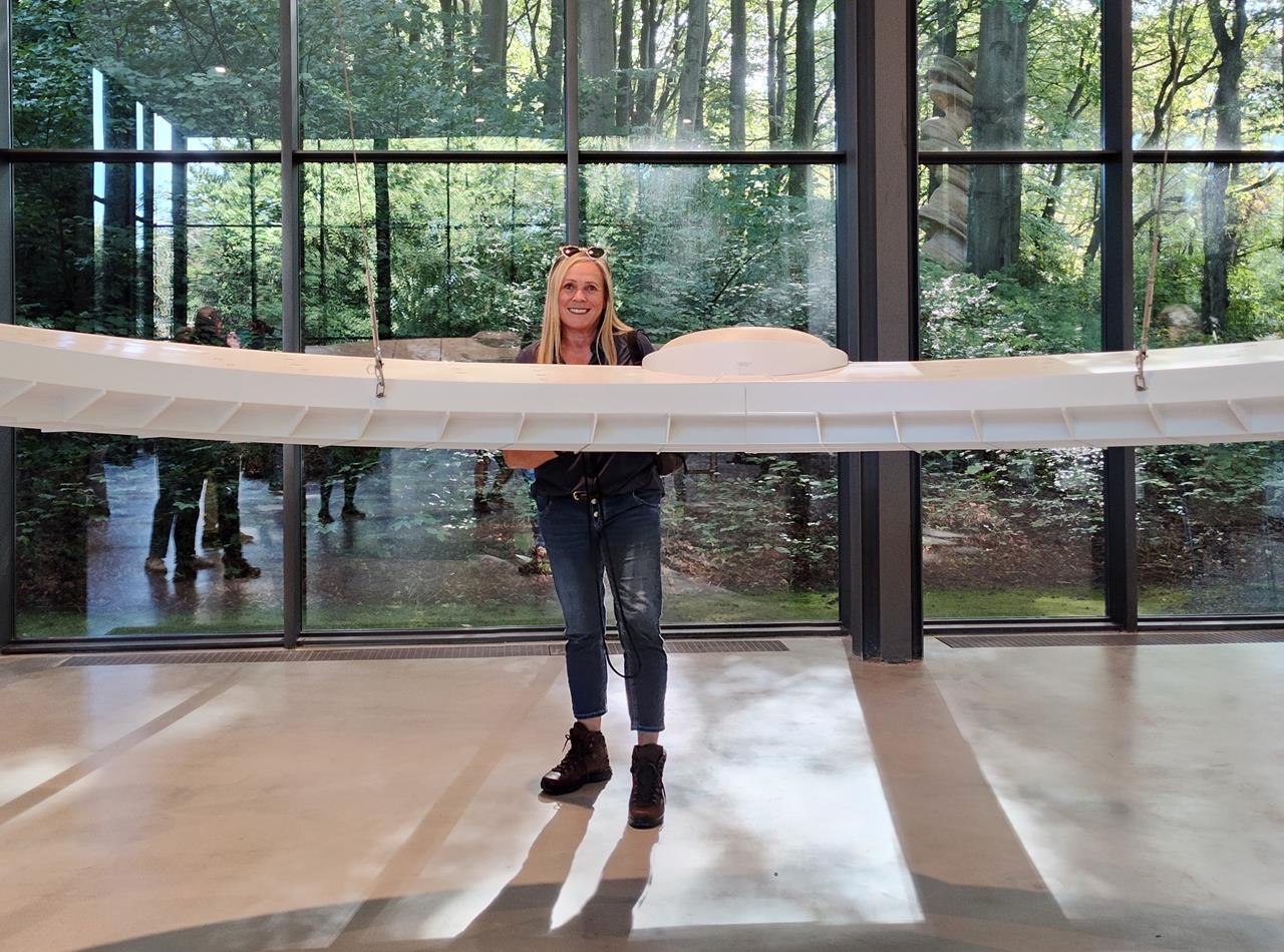 Besonders eindrucksvoll die Großskulptur „Ouranopolis“ von Anne und Patrick Poirier, die zuletzt im Jahr 2016 gezeigt wurde. Wie ein großes Raumschiff hängt sie als Ring in einer der Ausstellungshallen.