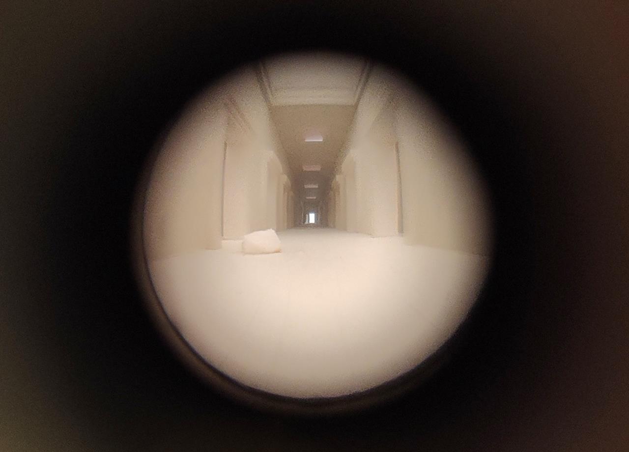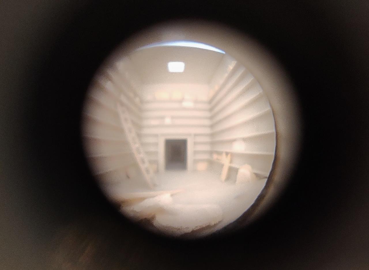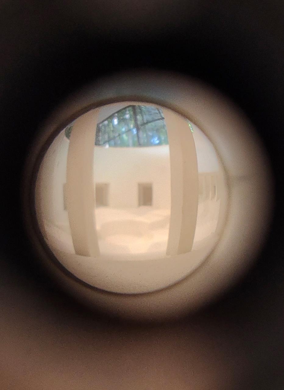 Durch die zahlreichen kleinen Gucklöcher (Spione) entlang der Fassade blickt man in miniaturisierte Räume innerhalb der Skulptur, die sie als eine Ansammlung unterschiedlichster Lebenswelten erscheinen lassen. Faszinierend ist das.