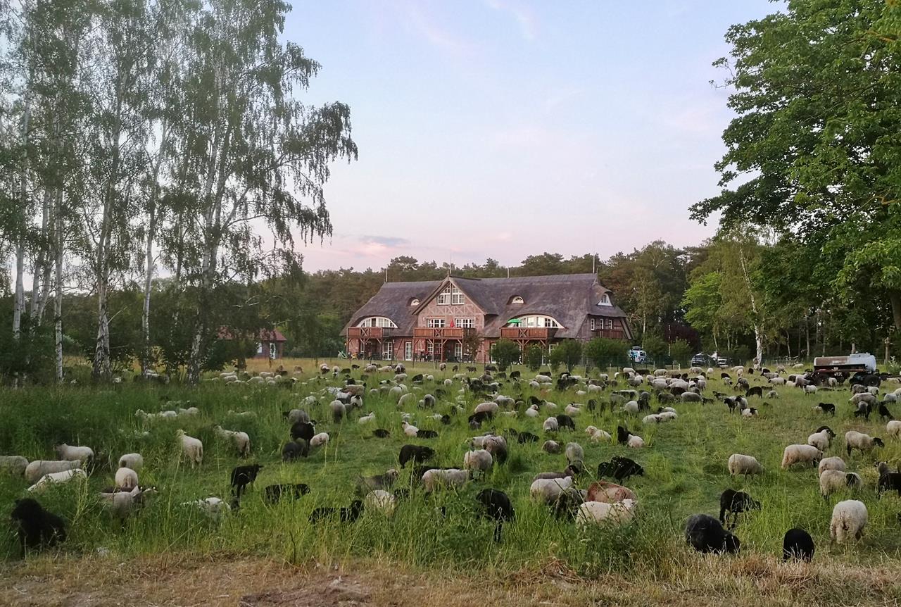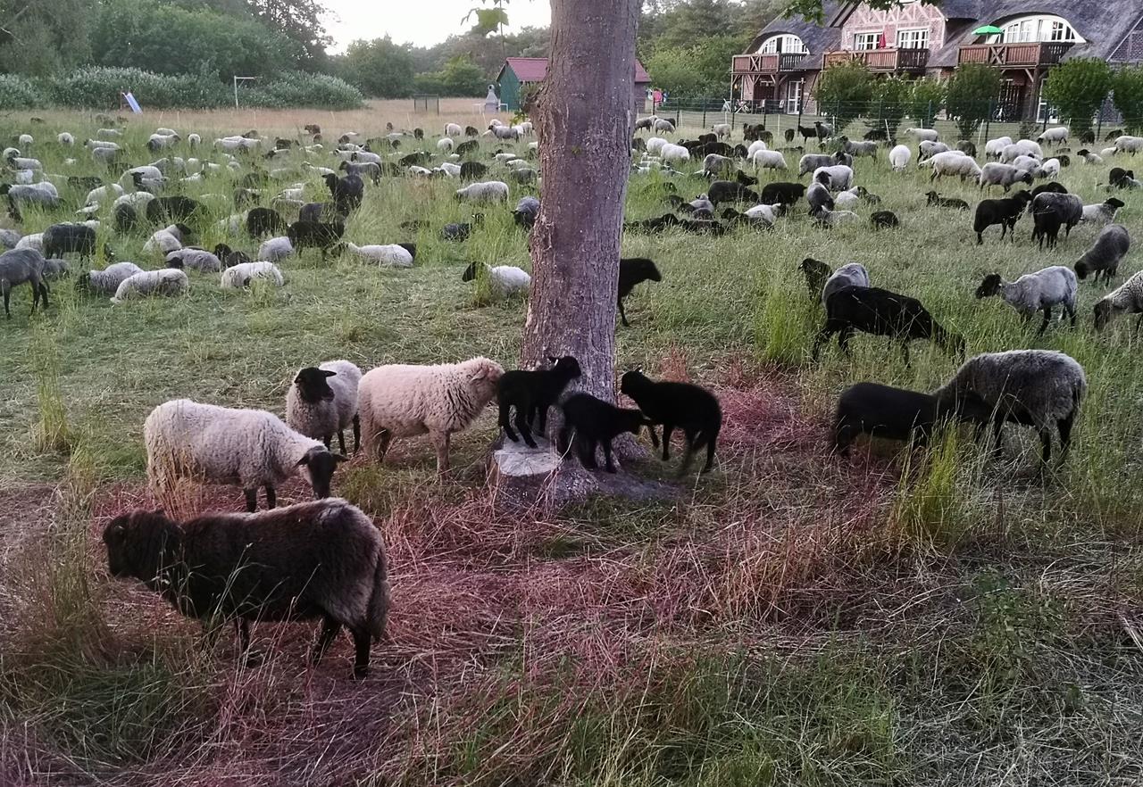 Das „Haus an der Düne“ mit einer Schafherde davor