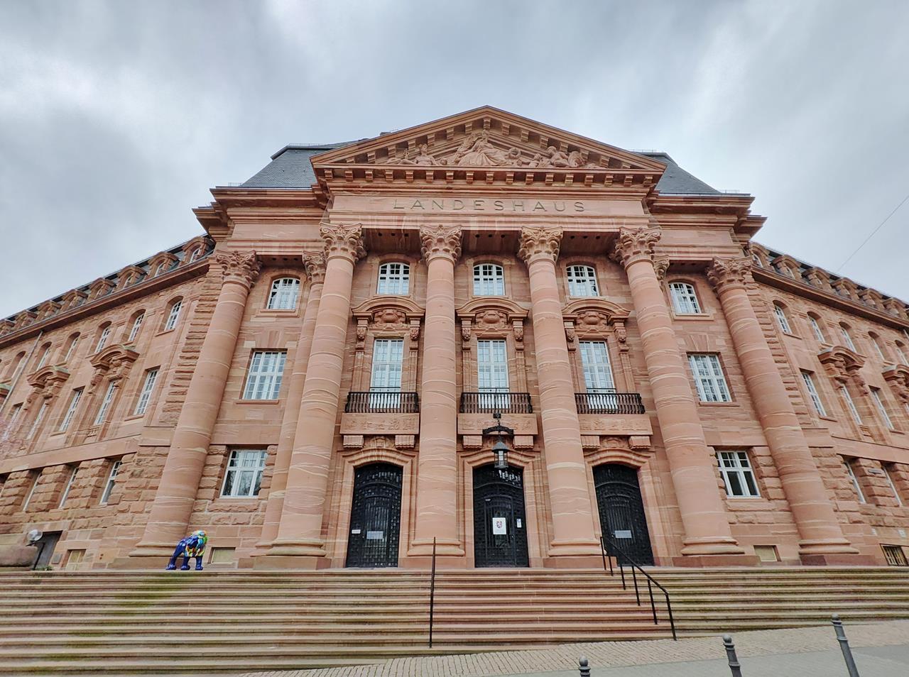 Blick aus dem Park „Warmer Damm“ auf das Hessische Staatstheater