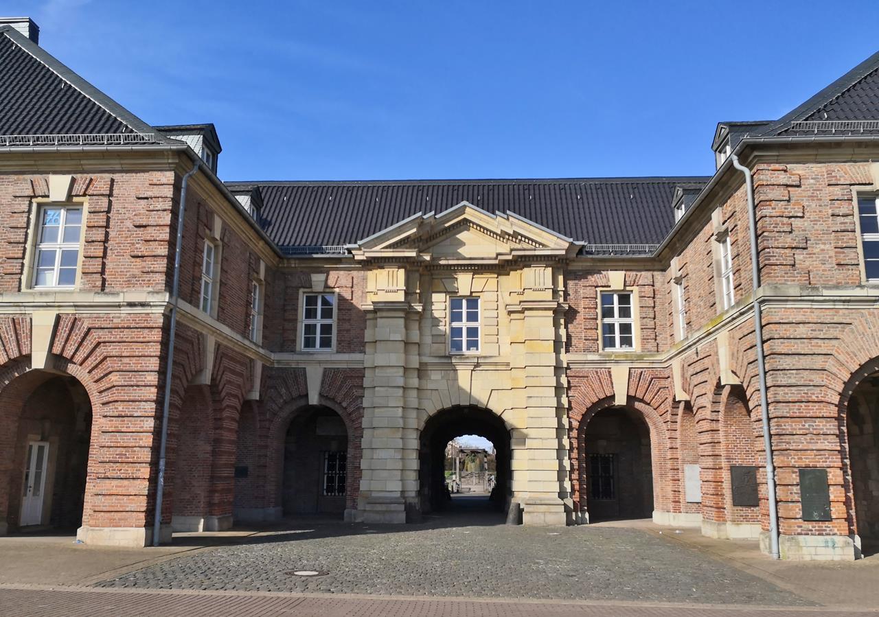 Der Hintergrund wird bei einer kurzen Internet-Recherche klar: Die Stadt war bis ins 20. Jahrhundert militärisch geprägt. Aufgrund ihrer strategischen Bedeutung wurde sie im Zweiten Weltkrieg beim Vorrücken alliierter Truppen über den Rhein fast vollständig zerstört.Von der ab 1861 durch die Preußen eingerichteten Festung sind lediglich Teile der zwischen 1688 und 1722 errichtete Zitadelle Wesel und das Berliner Tor erhalten geblieben. Die anderen drei prächtigen Stadttore wurden bereits 1886 nach der Entfestigung Wesels abgerissen.