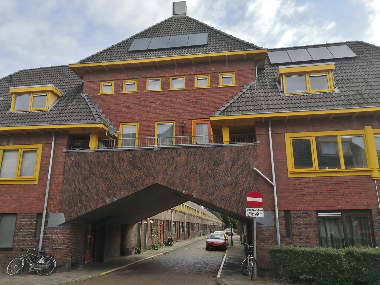 Innenhof der Sozialsiedlung mit vielen hübschen, aber schmalen HJäuschen
