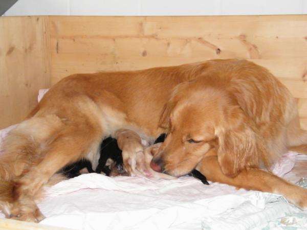 Wir haben das ganze Geschehen dann schnell in die Wurfkiste verlagert, wo Bellis seitdem weitere Welpen abgelegt hat.