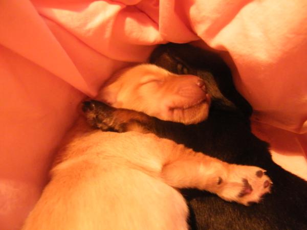 Die schönsten Welpenfotos gelingen, wenn sich die Kleinen zusammenkuscheln.