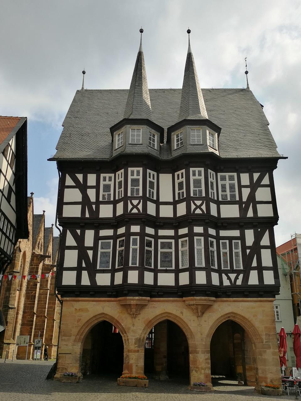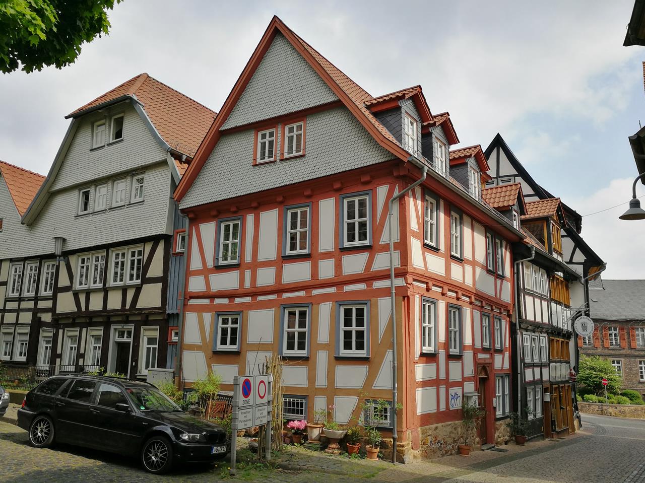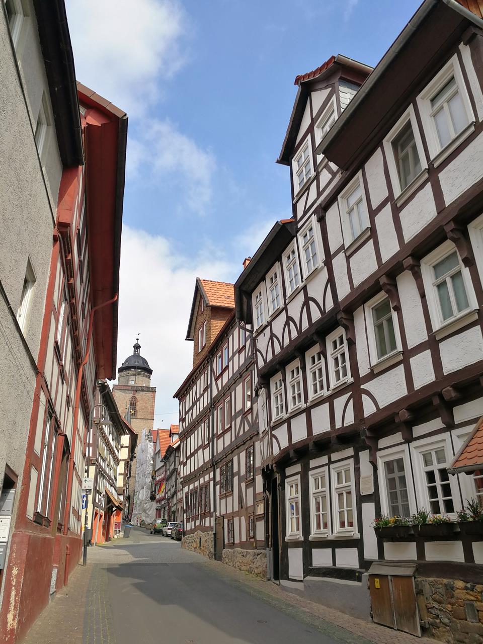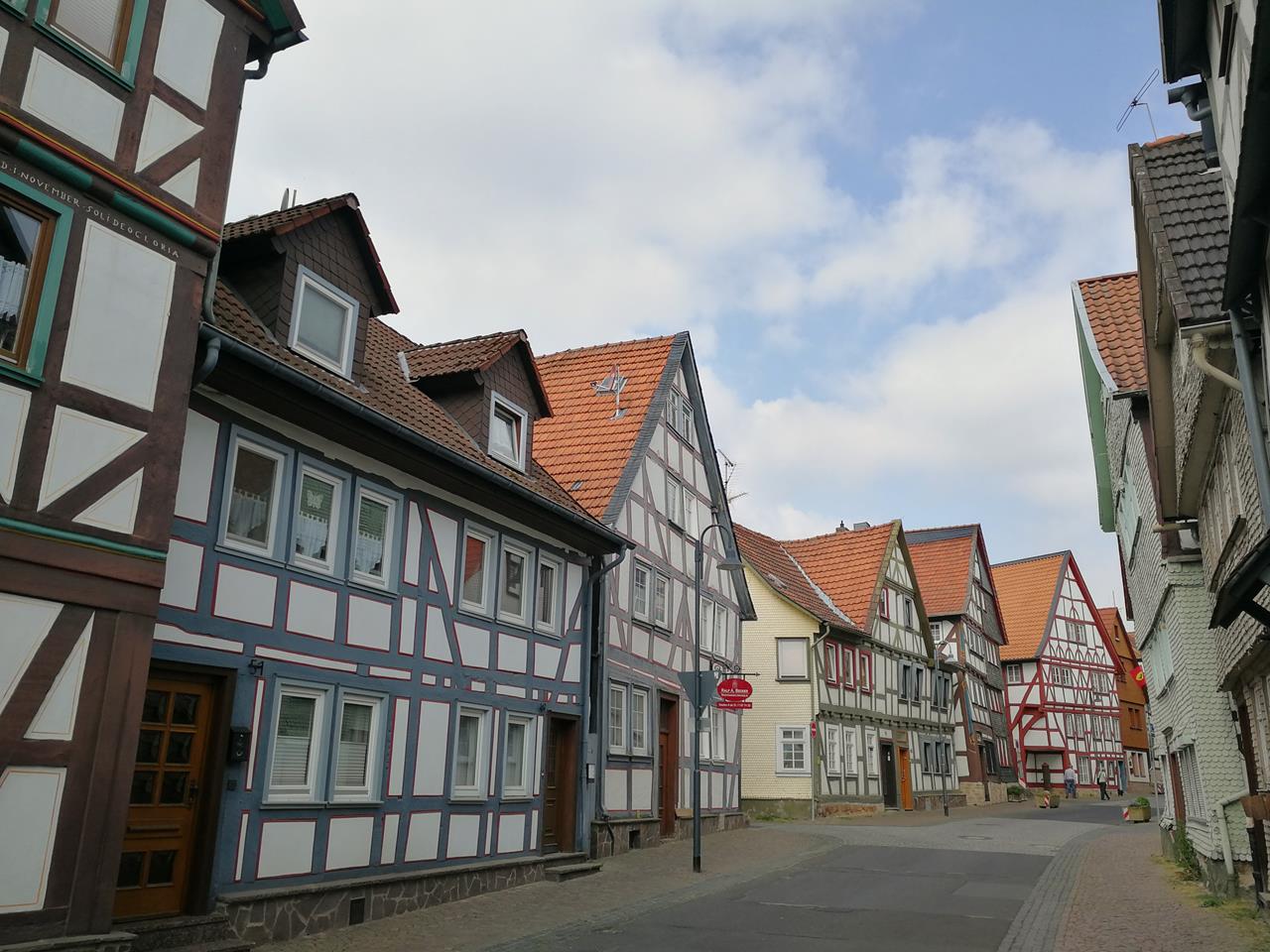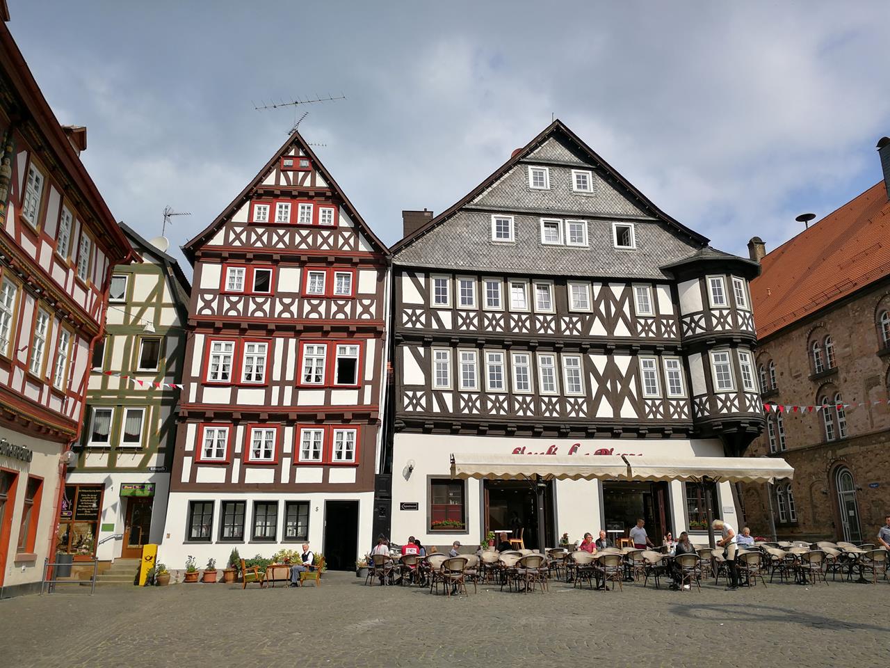 Den Anfang macht Alsfeld im mittelhessischen Vogelsbergkreis. Ich habe gelesen, dass die Stadt über eine sehr schöne Altstadt mit geschlossener mittelalterlicher Bebauung aus sieben Jahrhunderten verfügt. Das möchte ich mir gerne anschauen.Der Wohnmobil-Stellplatz am Rande der Altstadt ist bei unserer Ankunft ordentlich gefüllt, das ist schon einmal ein gutes Zeichen. Und tatsächlich begegnet mir ein überaus sehenswertes Städtchen, wie ich bei einem ausgiebigen Rundgang mit Doxi feststelle.