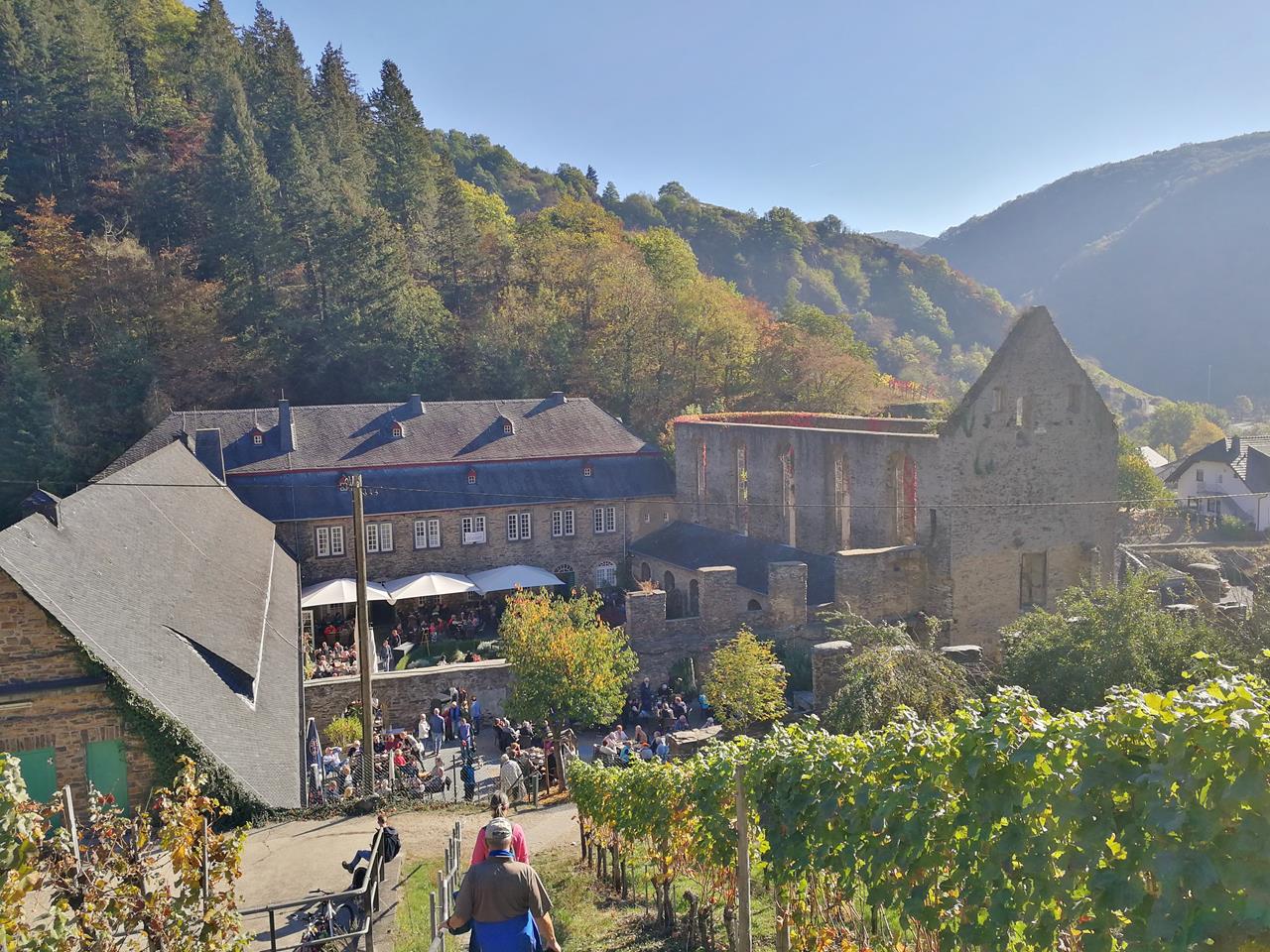Zum ersten Mal seit der verheerenden Flut vom Juli 2021 blicke ich wieder ins Ahrtal. Mit Heike und Doxi will ich ein wenig durch die herbstlich bunten Weinberge laufen.