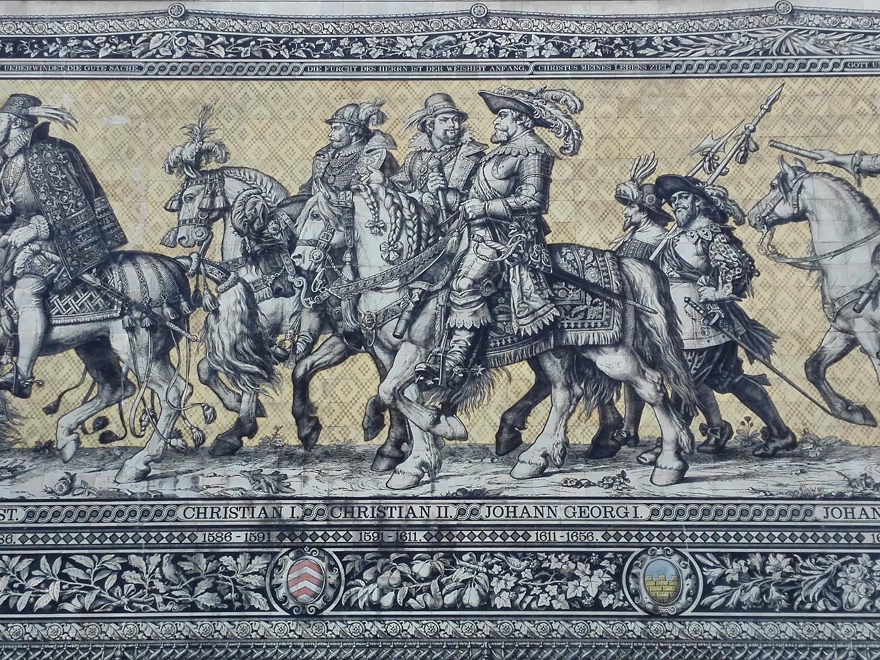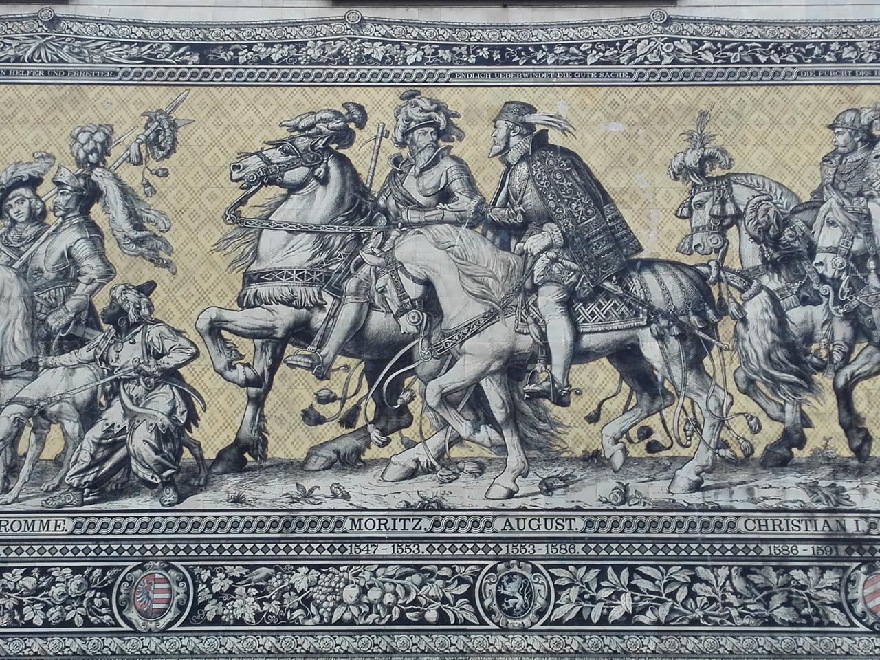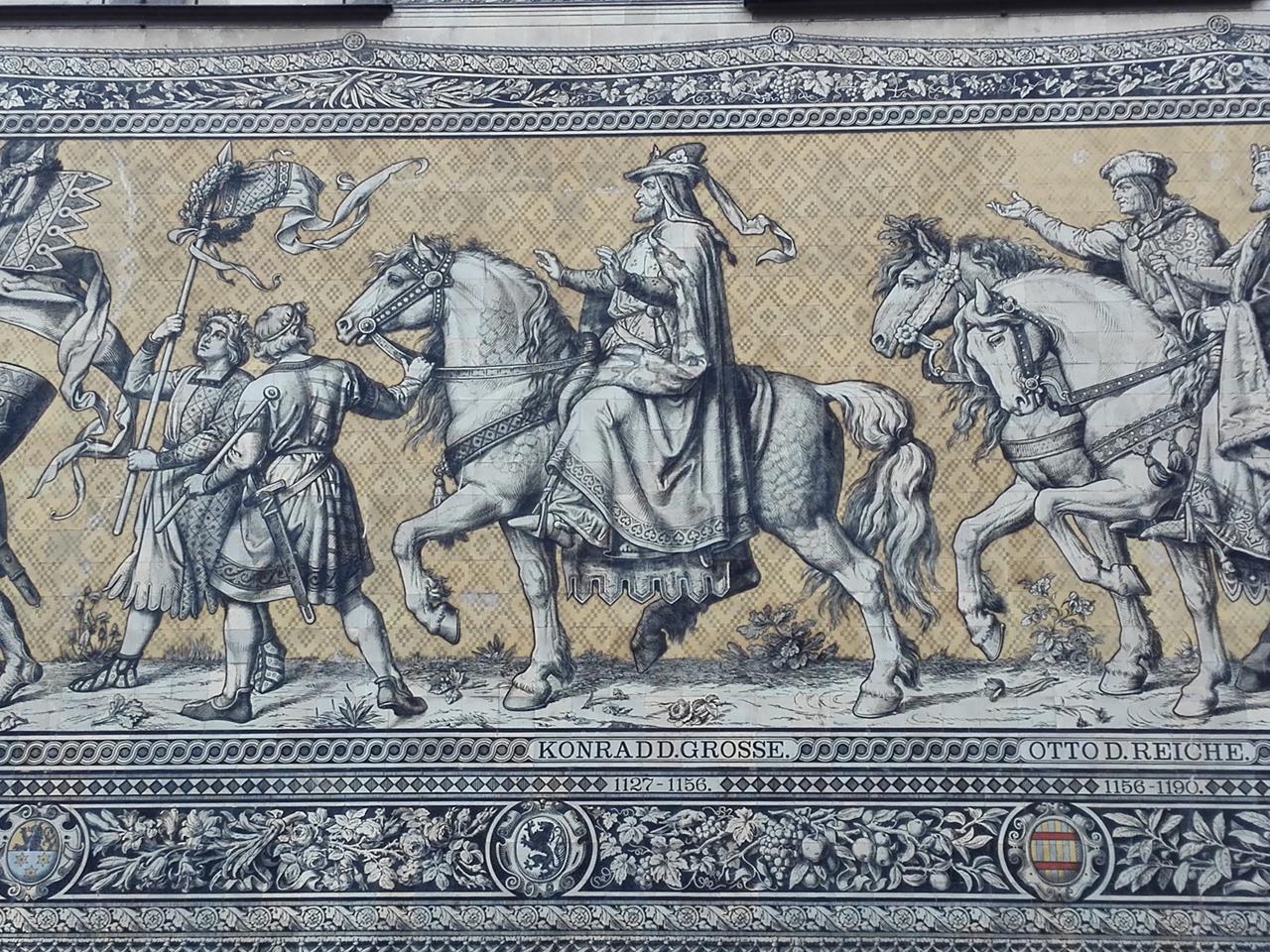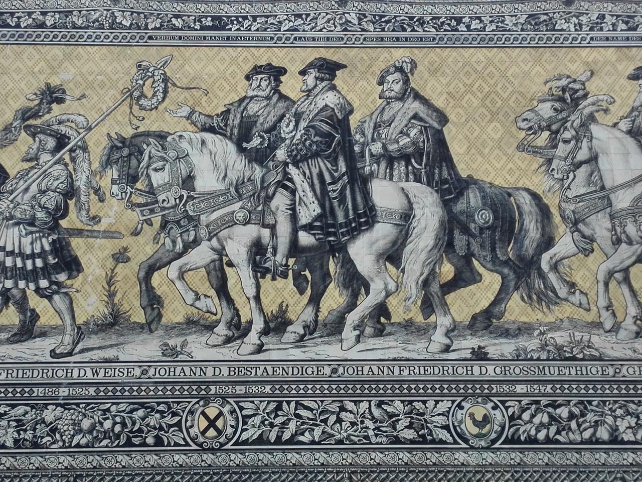 Dresden ist reich an Kunstwerken, Skulpturen und anderen kulturellen Schätzen. Ein Werk, das mich besonders fasziniert, ist der sogenannte „Fürstenzug“, ein mehr als 100 Meter langes Porzellanbild an der Rückseite des alten Stallhofs, ganz in der Nähe der Frauenkirche.