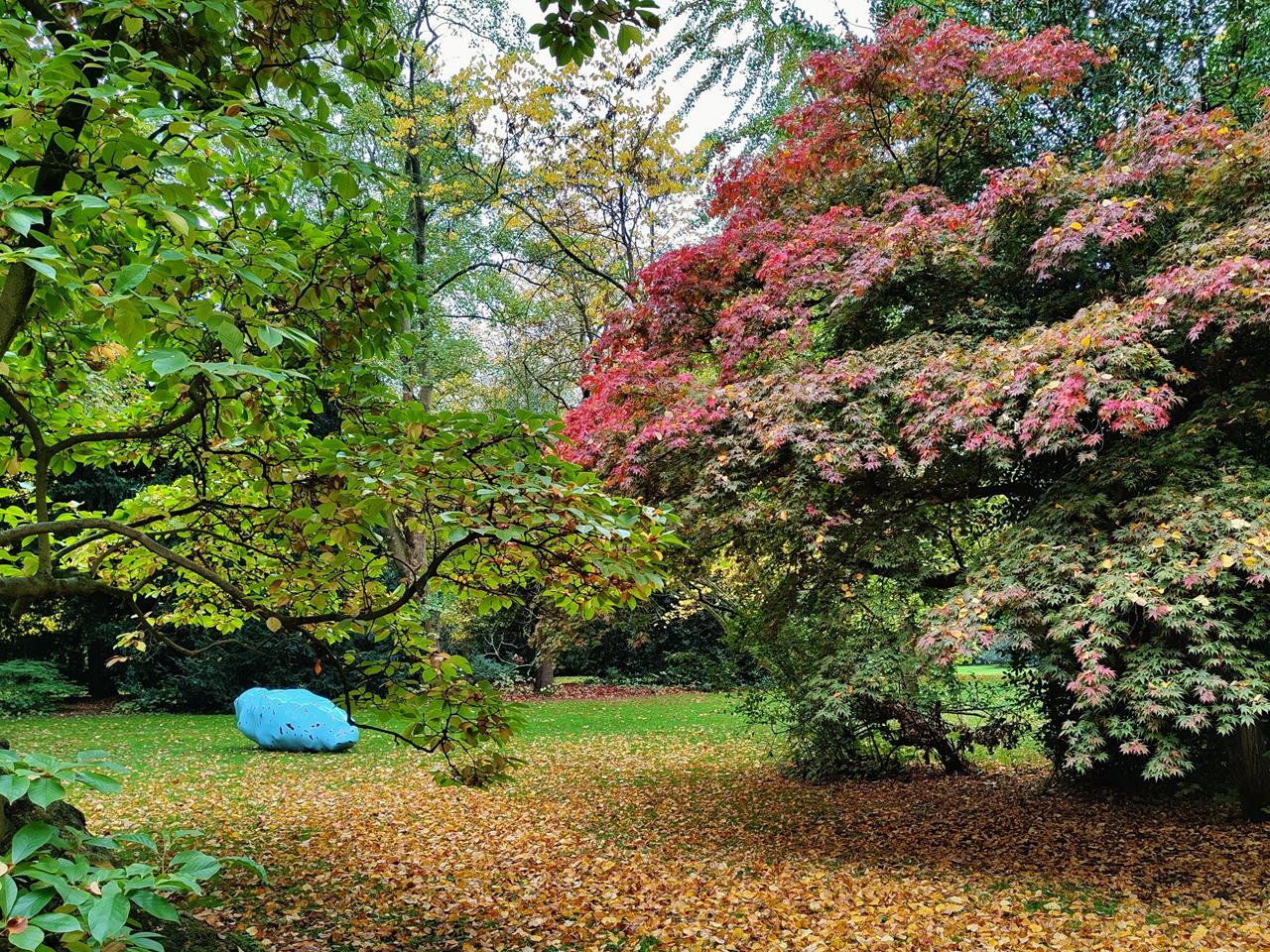 Heute Morgen war ich zwei Stunden mit der Kamera rund um den Düsseldorfer Hofgarten unterwegs. Ich hatte mir vorgenommen, einige herbstliche Motive zwischen Natur und Architektur einzufangen. Oper, Kunstpalast, Schauspielhaus, Dreischeibenhaus, Malkasten: überall kommen mir die bunten Bäume in ihren festlich geschmückten Ballkleidern entgegen. Die Architektur wird da fast zur Kulisse. Und weil zuletzt wenig Wind herrschte, sehen die Bäume gerade noch ganz fein und unzerzaust aus. Wird aber nicht so bleiben, schon morgen soll Sturm aufziehen.