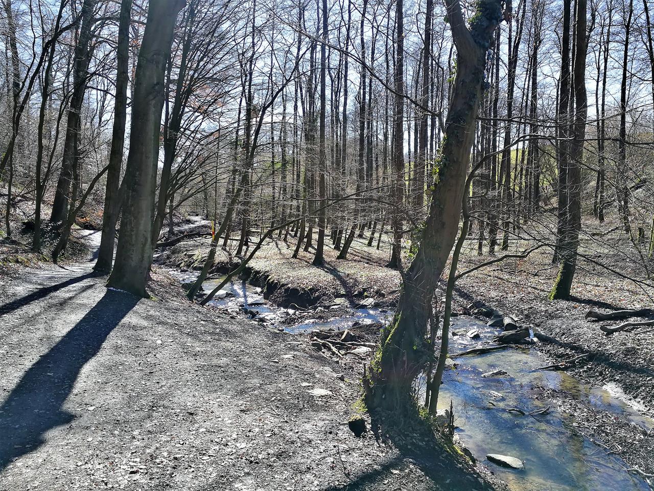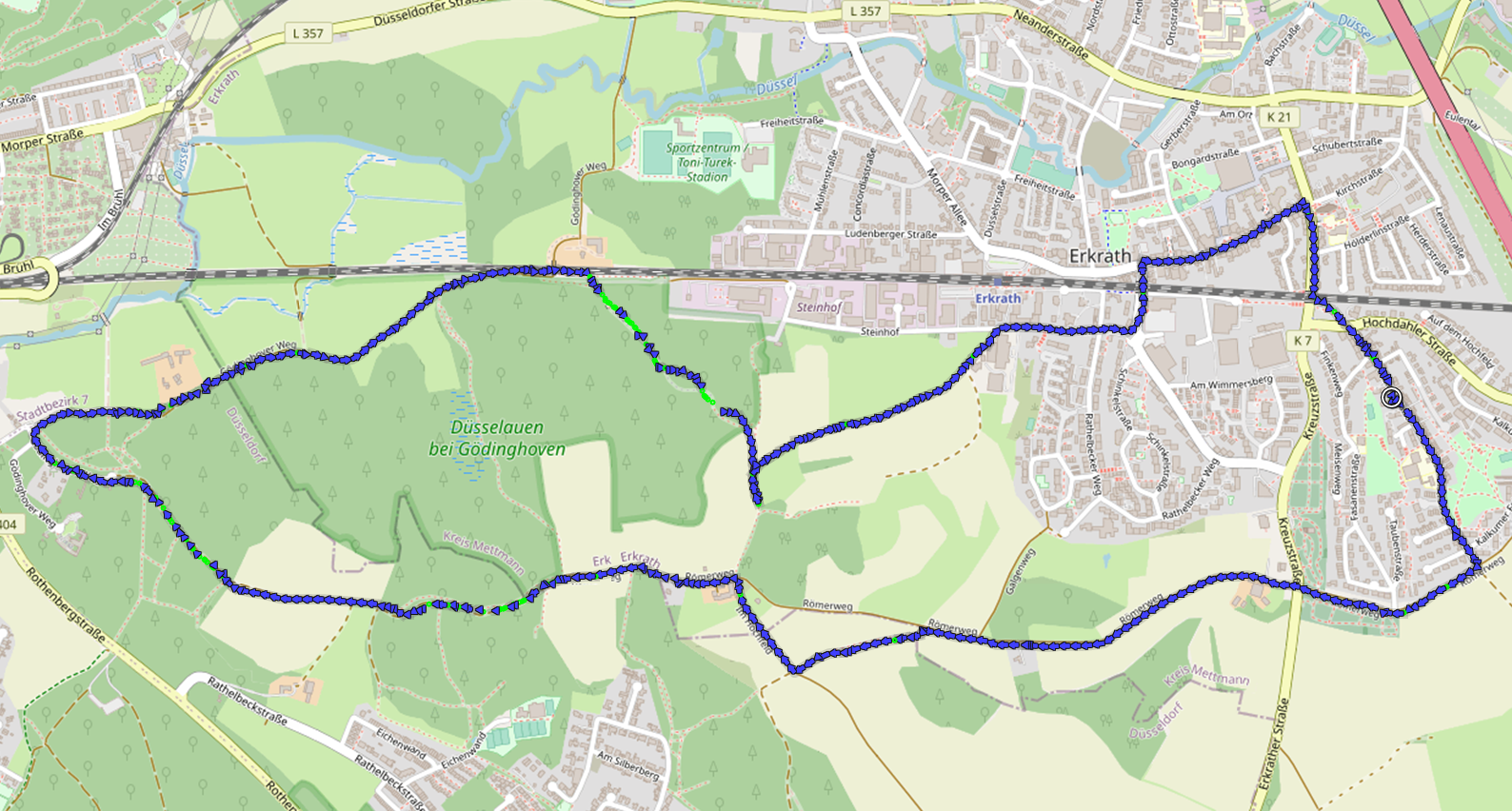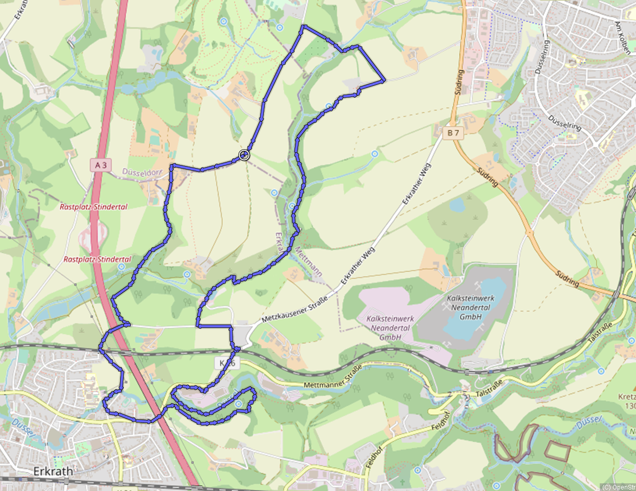 Wir starten am Unterbacher See, ein durch Auskiesung entstandener Baggersee, der ausschließlich aus Grundwasser gespeist wird. Am See gibt es zwei Freibäder, Campingplätze, Gastronomie und einen Hochseilgarten.Am südwestlichen Seerand unterqueren wir die Autobahn A46, die den Unterbacher See vom etwa gleich großen Elbsee trennt.