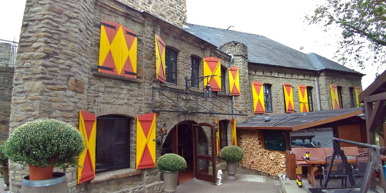 Dann durchqueren wir den kleinen Ort Blankenstein und erreichen die gleichnamige Burg auf einem Bergsporn rund 70 Meter über der Ruhr. Im 13. Jahrhundert durch den Grafen Adolf I. von der Mark erbaut und nach ihrem allmählichen Verfall am Ende des 18. Jahrhunderts im Stil des Historismus wieder aufgebaut, beherbergt sie heute ein beliebtes Burgrestaurant.