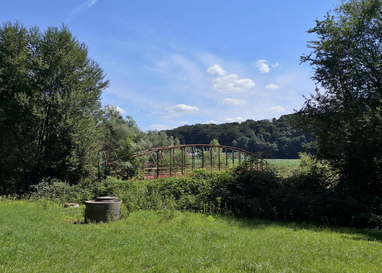 Brücke mit Versorgungsleitungen über die Wupper am Ortsrand von Leichlingen