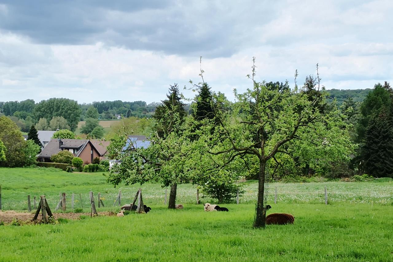 Heute nun ein ganz anderes Bild, als wir den Obstweg bei Leichlingen laufen:Mittlerweile haben auch die Äpfel- und Birnenbäume geblüht. Einige wenige Blüten sind noch zu erkennen, doch das Grün der frischen Blätter dominiert bereits.