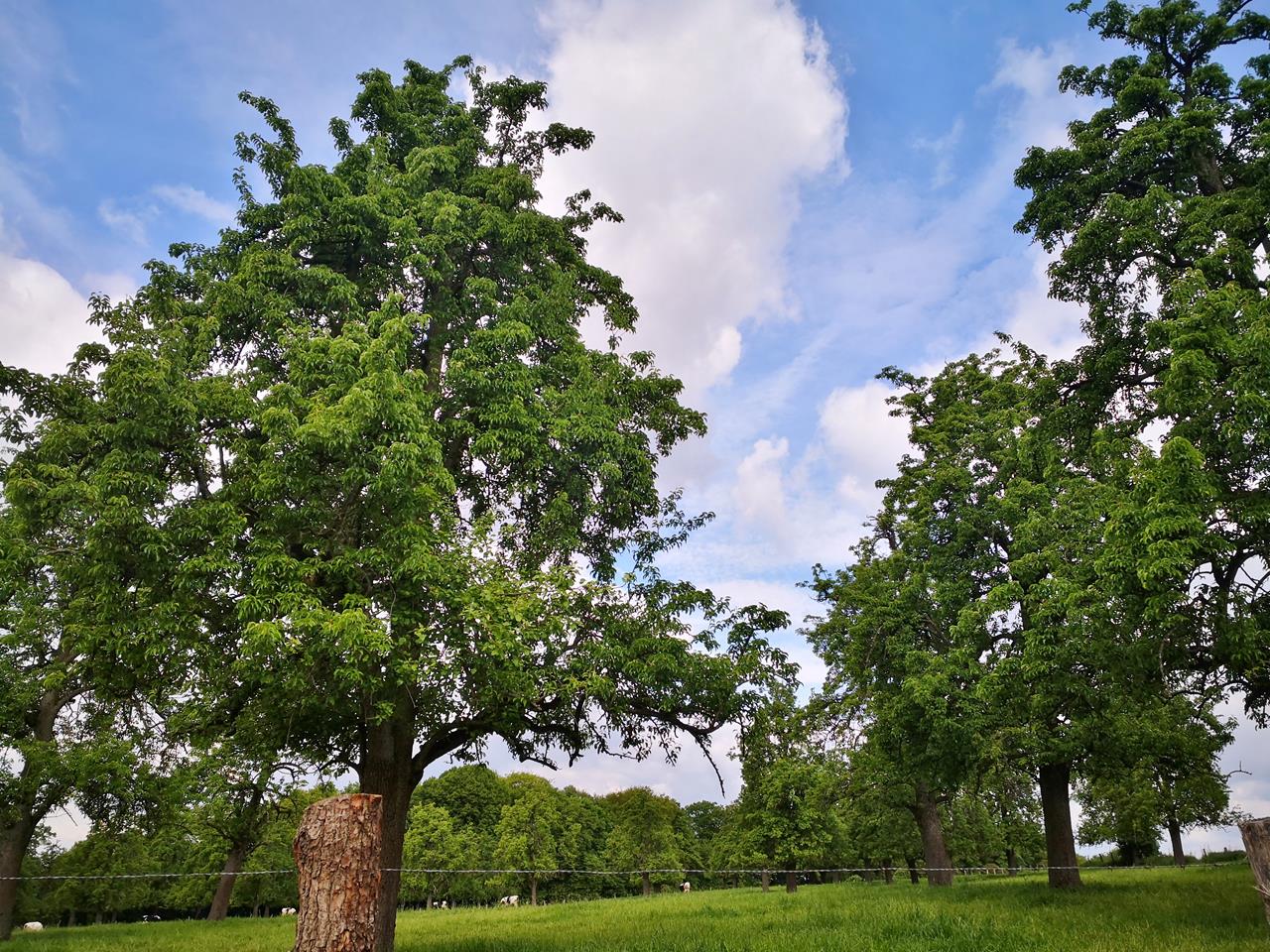 Frisch ergrünte Obstbäume