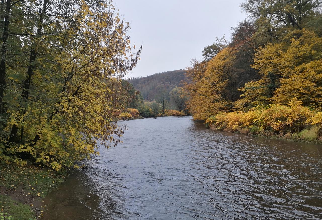 Blick auf die Wupper von unserem Startpunkt an der Brücke in Glüder
