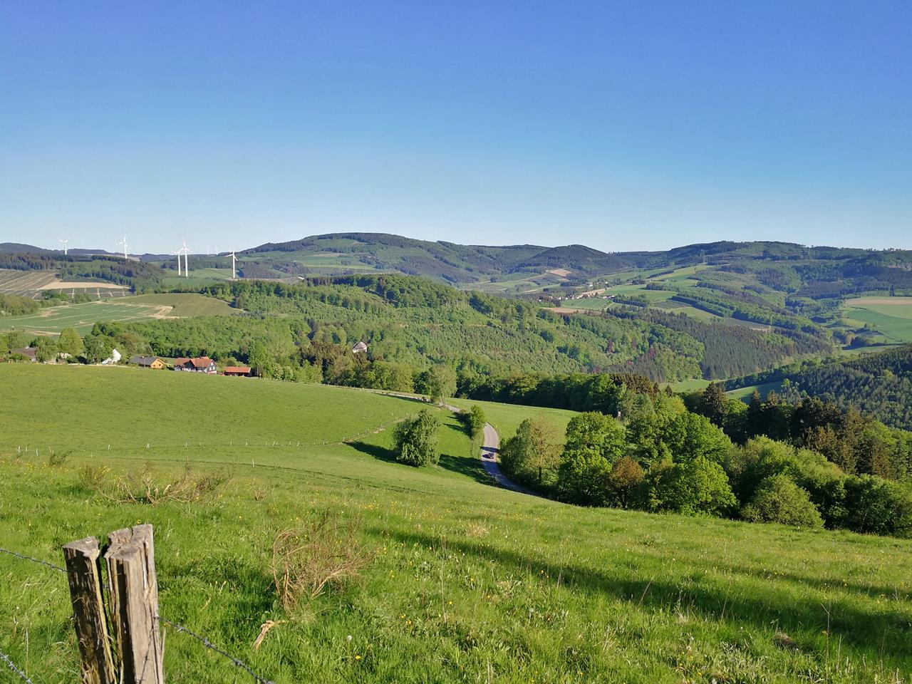 Nun geht es langsam, aber stetig abwärts in einer großen Runde um den Vogelsang zurück zum Startpunkt unserer Wanderung am Rande von Meschede. Von dort sind es noch einmal fast vier Kilometer zurück zu unserem Womo-Stellplatz nahe der Staumauer. Glücklich, aber auch ein wenig erschöpft, treffen wir dort kurz vor dem Einsetzen der Abenddämmerung wieder ein.