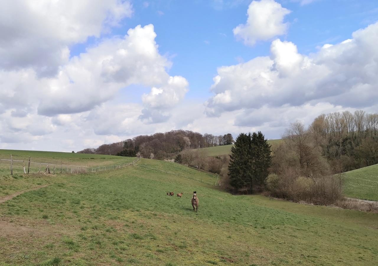 Auf einer schönen Wanderung durch die leicht hügelige Landschaft das Niederbergischen war ich heute mit Doxi zwischen Homberg (Stadt Ratingen) und Metzkausen (Stadt Mettmann) unterwegs.