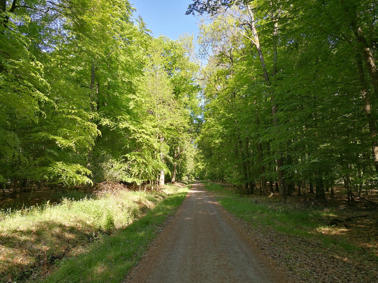 Wir drehen noch eine kleine Runde durch den Wald, kommen am schönen Jagdschloss Sankt Meinolf vorbei, beobachten einen Waldarbeiter beim Aufladen frisch geschlagener Stämme und erreichen bald wieder das Torhaus, wo ich das Fahrrad geparkt habe.