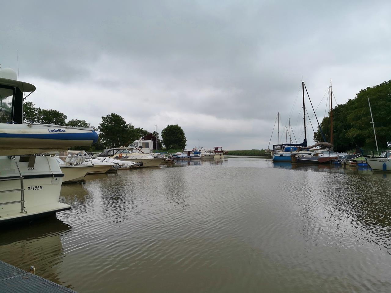 Denn zwischen dem Deich am Ortsrand und der Weser liegt die Strohauser Plate, die durch den Weser-Nebenarm Schweiburg vom Ort getrennt ist. Und über den Schweiburg führt keine Brücke.Trotzdem möchte ich mir das gerne einmal aus der Nähe anschauen. Also laufen wir zum Deich und dem dahinter liegenden Yachthafen am Abser Sieltief, das in den Schweiburg mündet. Von dort wandern wir auf einem Feldweg in Richtung Schweiburg.