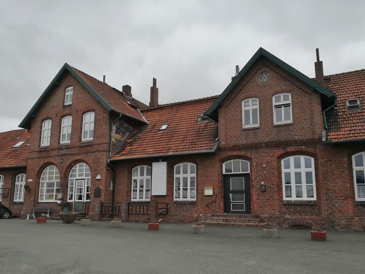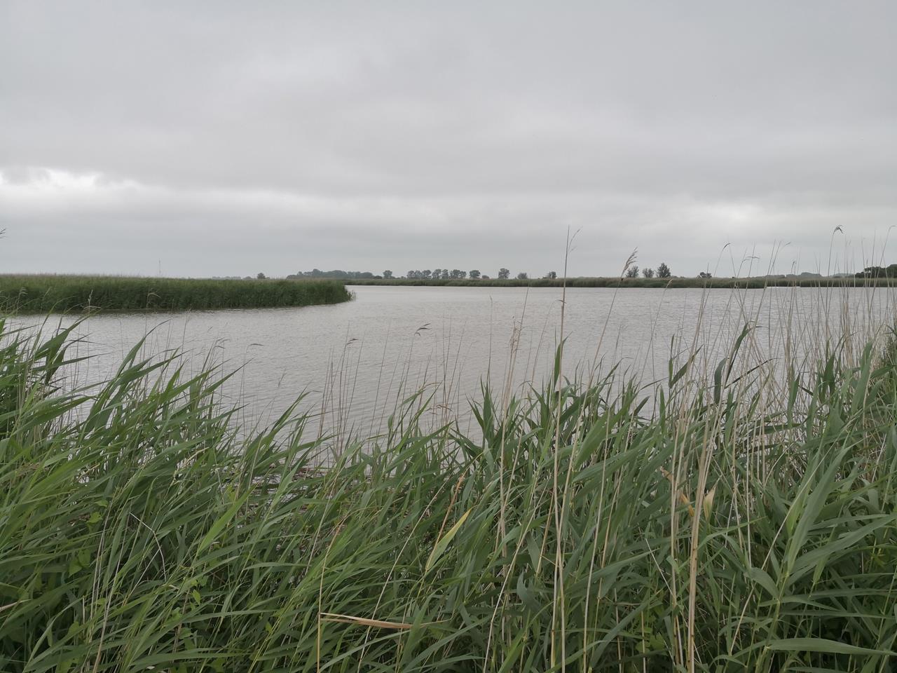 Und dort geht es tatsächlich nicht weiter. Wie ich auf Wikipedia erfahre, führt lediglich eine privat betriebene Motorfähre über den Wasserarm. Die gehört dem einzigen Bauern, der auf dem Schweiburg noch einen Hof betreibt. Okay, dann war das also nichts. Aber trotzdem ist es schön hier in der Natur der Wesermarsch, auch wenn wir die Weser nur in der Ferne erahnt haben.