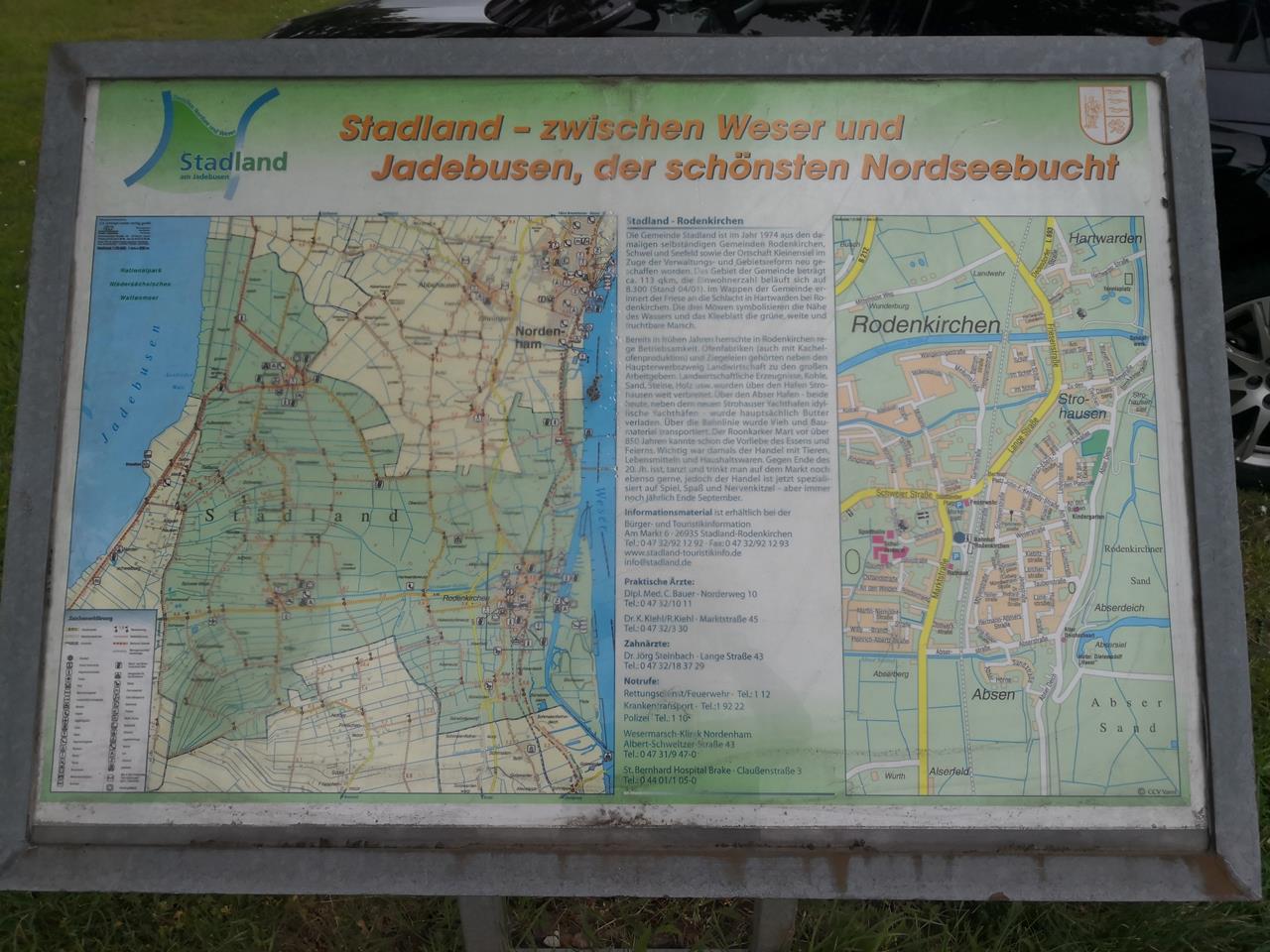 Zum Ende des Tages möchte ich gerne noch mit Doxi ein wenig an der Weser spazieren gehen. Doch das erweist sich als schwieriger als gedacht. Ich bin nach Rodenkirchen an der Unterweser weiter gefahren. Dort gibt es einen kostenlosen Womo-Stellplatz auf dem großen Festplatz, doch die Weser bleibt für uns hier leider unerreichbar.