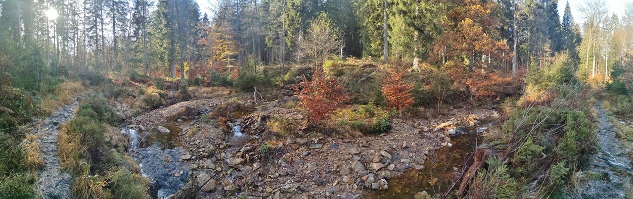 Panoramabild vom Zusammenfluss von Vichtbach (links) und Schleebach (rechts)