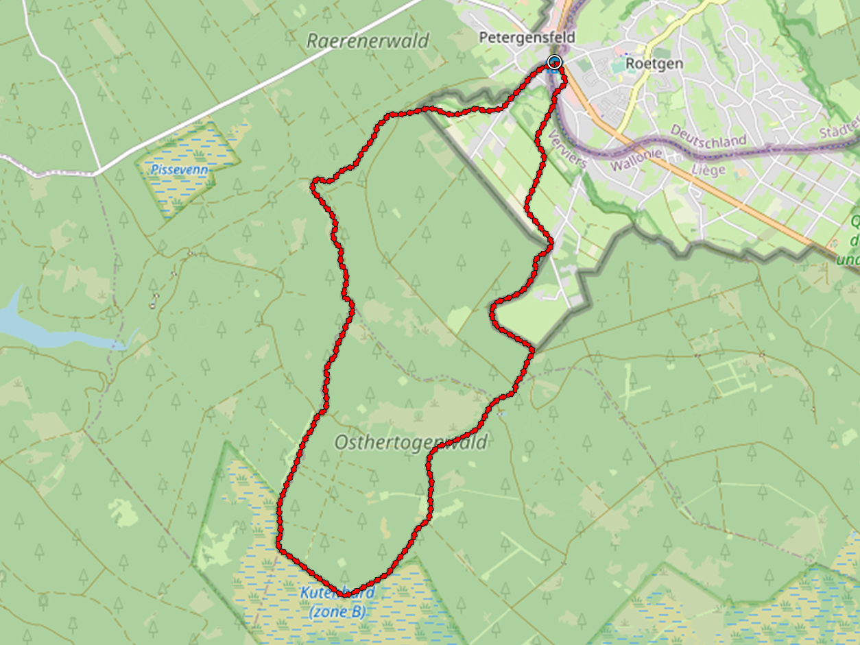 Zunächst geht es auf bekannten Wegen links und rechts der Inde durch den Wald. Kurz hinter der belgischen Grenze verlasse ich die Talsohle und laufe Richtung Roetgen.