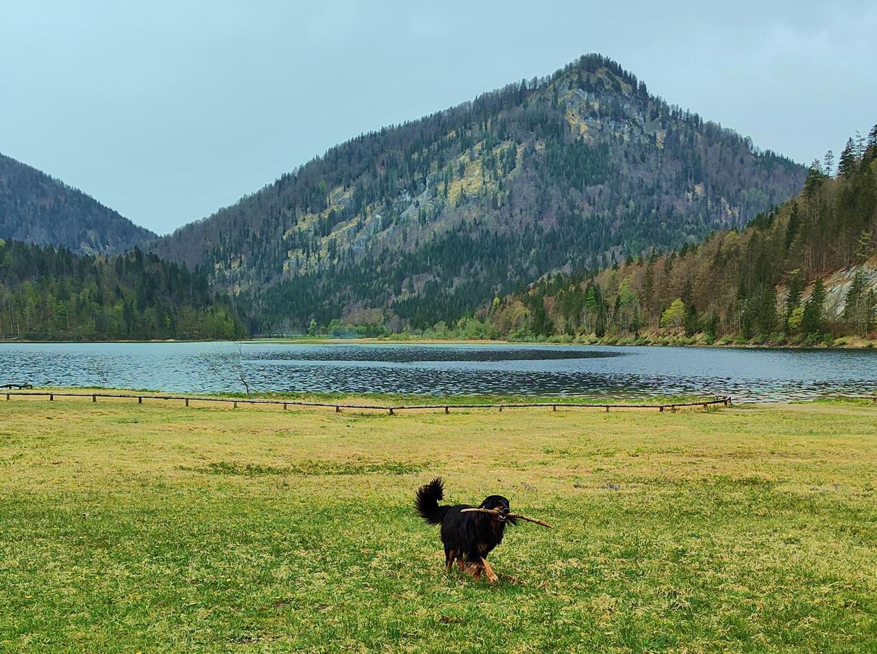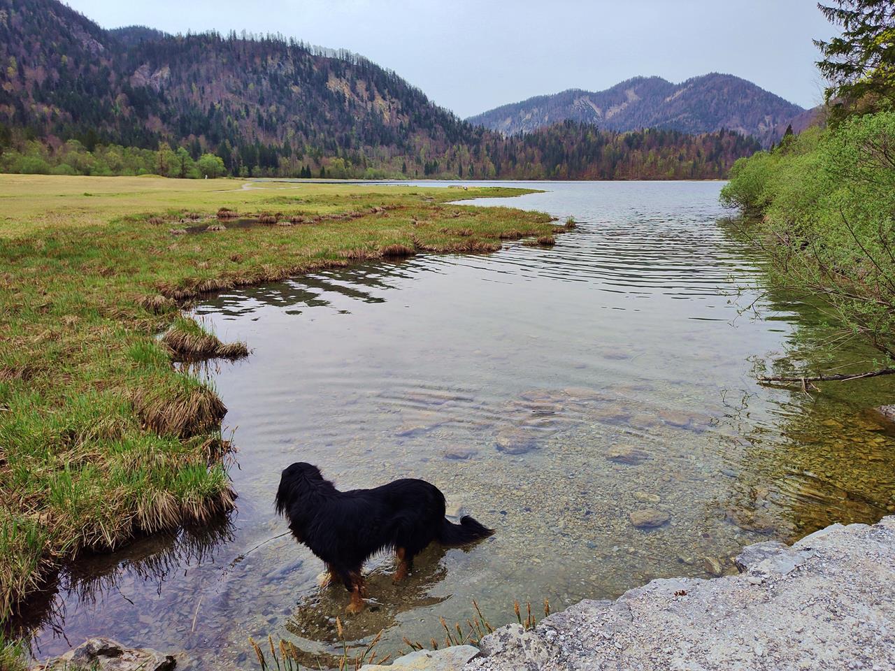 Andererseits gibt es in jeder Himmelsrichtung Berge mit schönen Almen zu erklimmen, wenn einem danach ist. Der kleine Womo-Rastplatz am Ortsrand direkt an der B 305 („Alpenstraße“) ist ein perfekter Ausgangspunkt dafür.