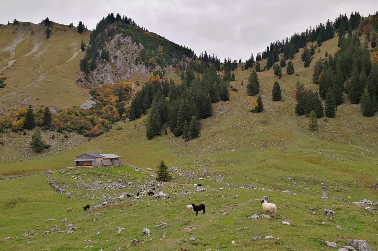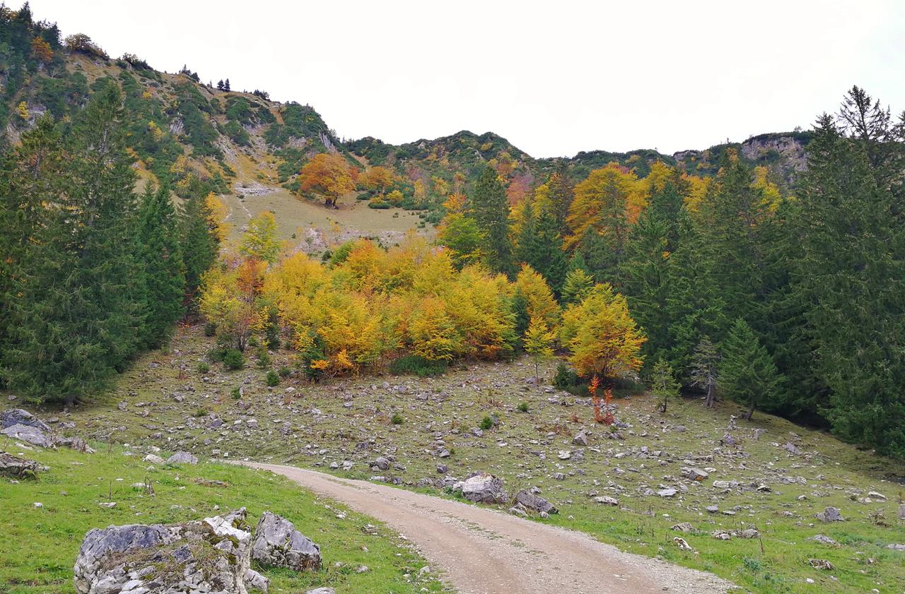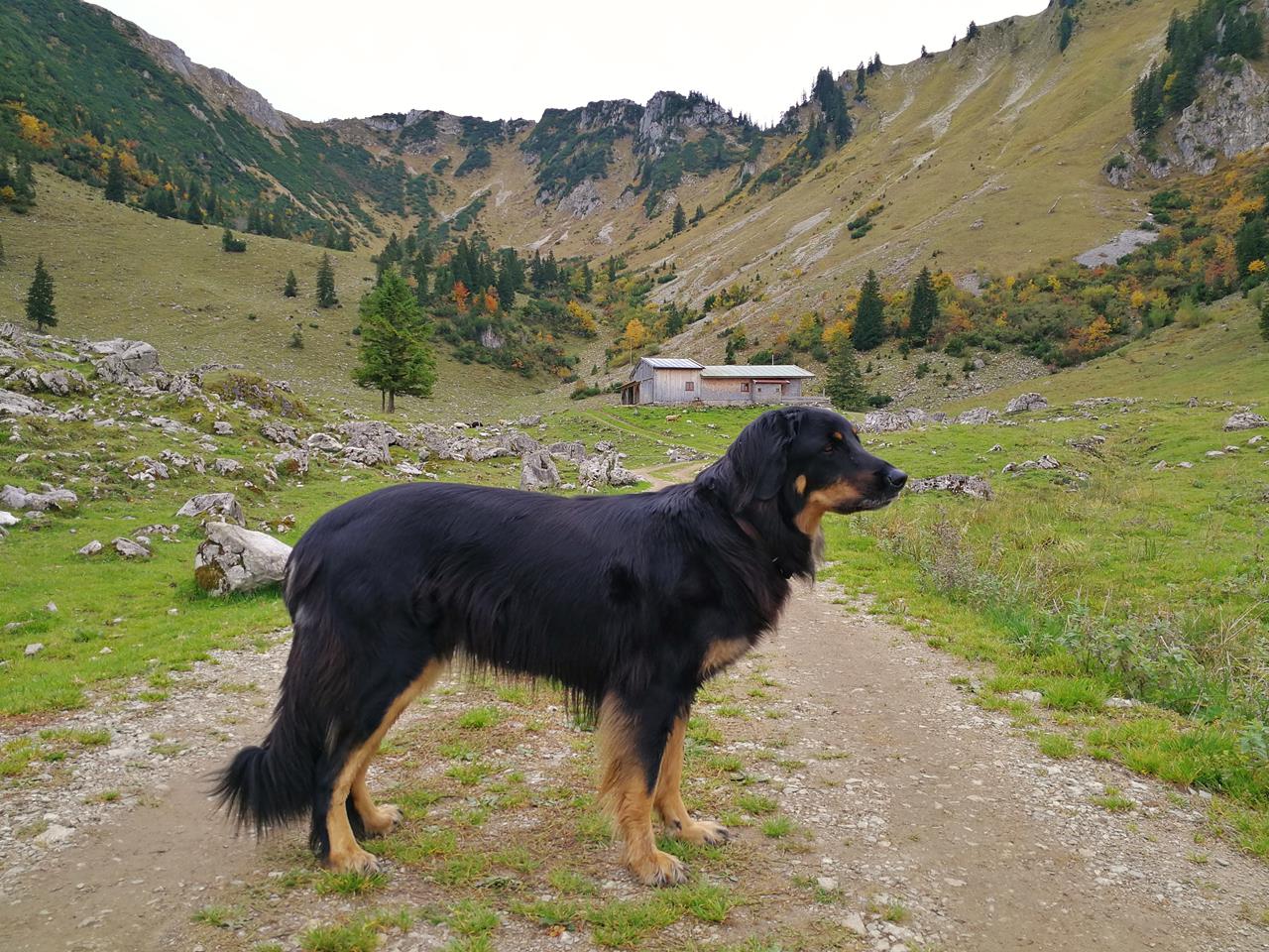 Mühsam und in ständiger Sorge um das Wohlergehen meines Hundes klettern wir wieder zur Anklalm hinab, teilweise auch ich auf allen Vieren.