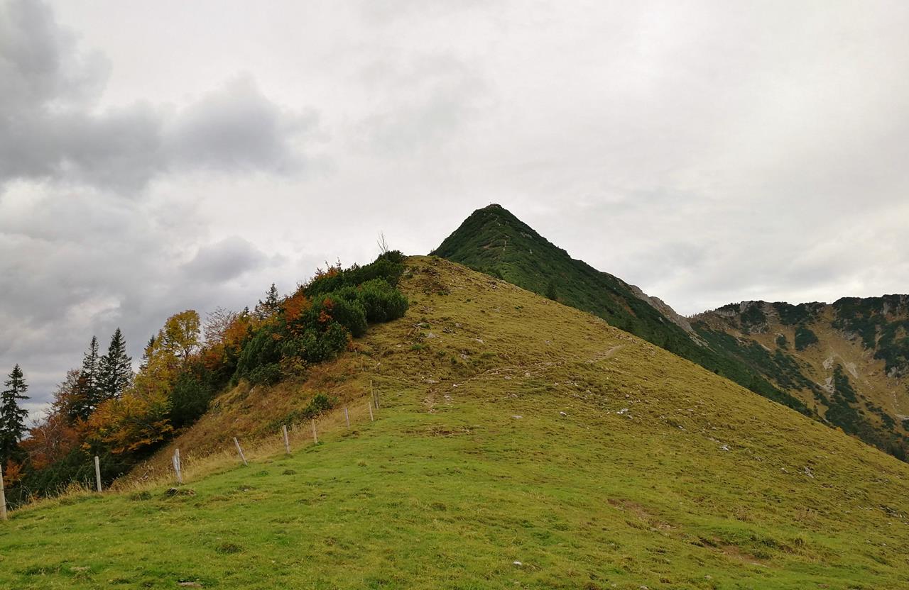 Es wird immer steiler und schwieriger, und mir wird zunehmend unwohl. Ob ich mir da nicht zu viel vorgenommen habe? Fünfzig Meter unterhalb des Gipfels kommen mir Wanderer entgegen. Sie berichten mir auf Nachfrage, dass die letzten Meter hinauf zum Gipfel noch anspruchsvoller werden und dass beim Abstieg auf der anderen Bergseite am Spitzingsattel ein schmaler Grat mit teils ausgesetzten Steig und einigen Seilsicherungen zu überwinden ist.