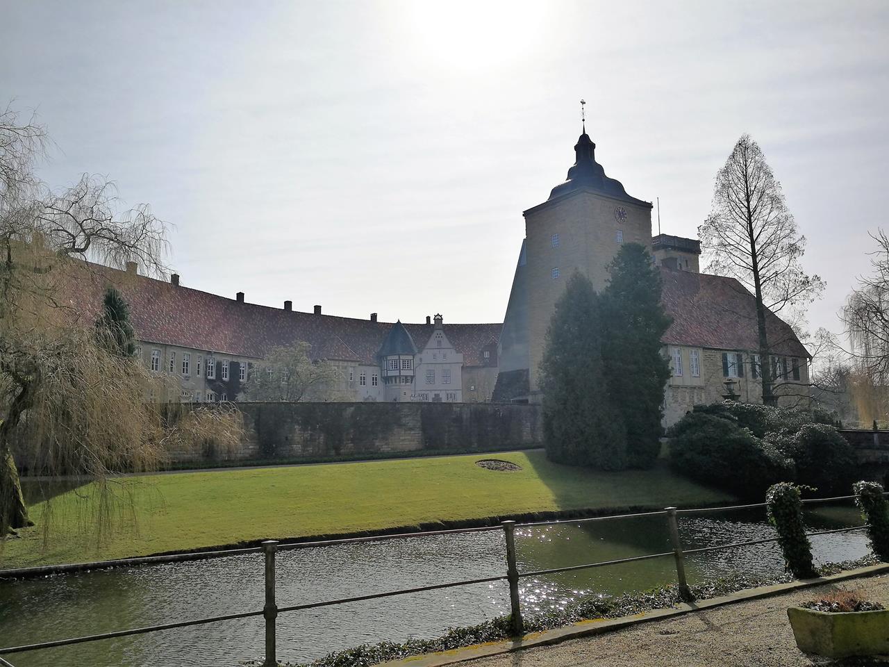 Nach unserem Besuch am Schloss Steinfurt unternehme ich mit Doxi eine zweistündige Wanderung durch den angrenzenden Schlosspark „Bagno“ und den dahinter liegenden Wald im Naturschutzgebiet Buchenberg.