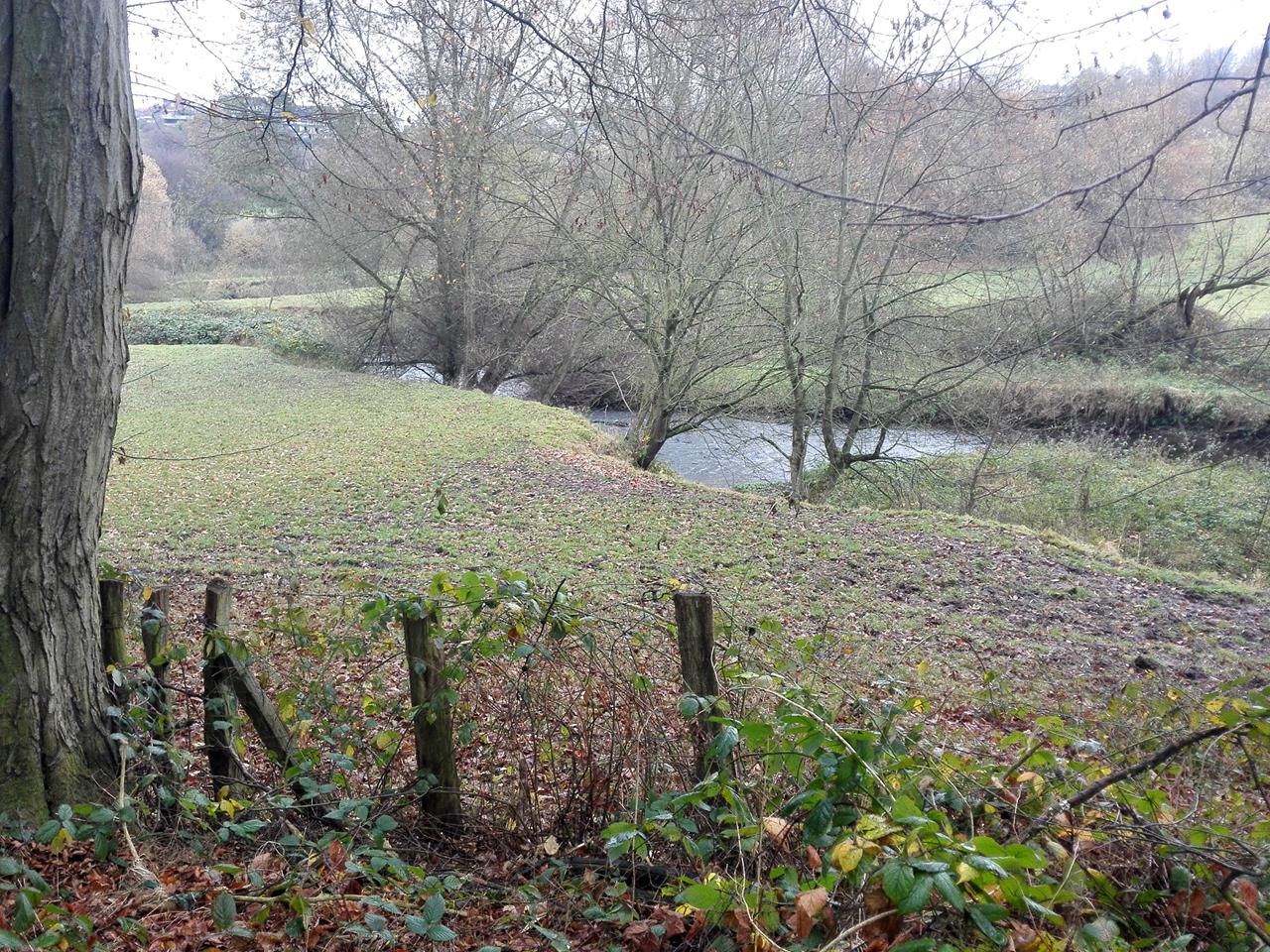 Die Wurm mäandert duch das Tal und hat sich tief in die Wiesenlandschaft eingegraben