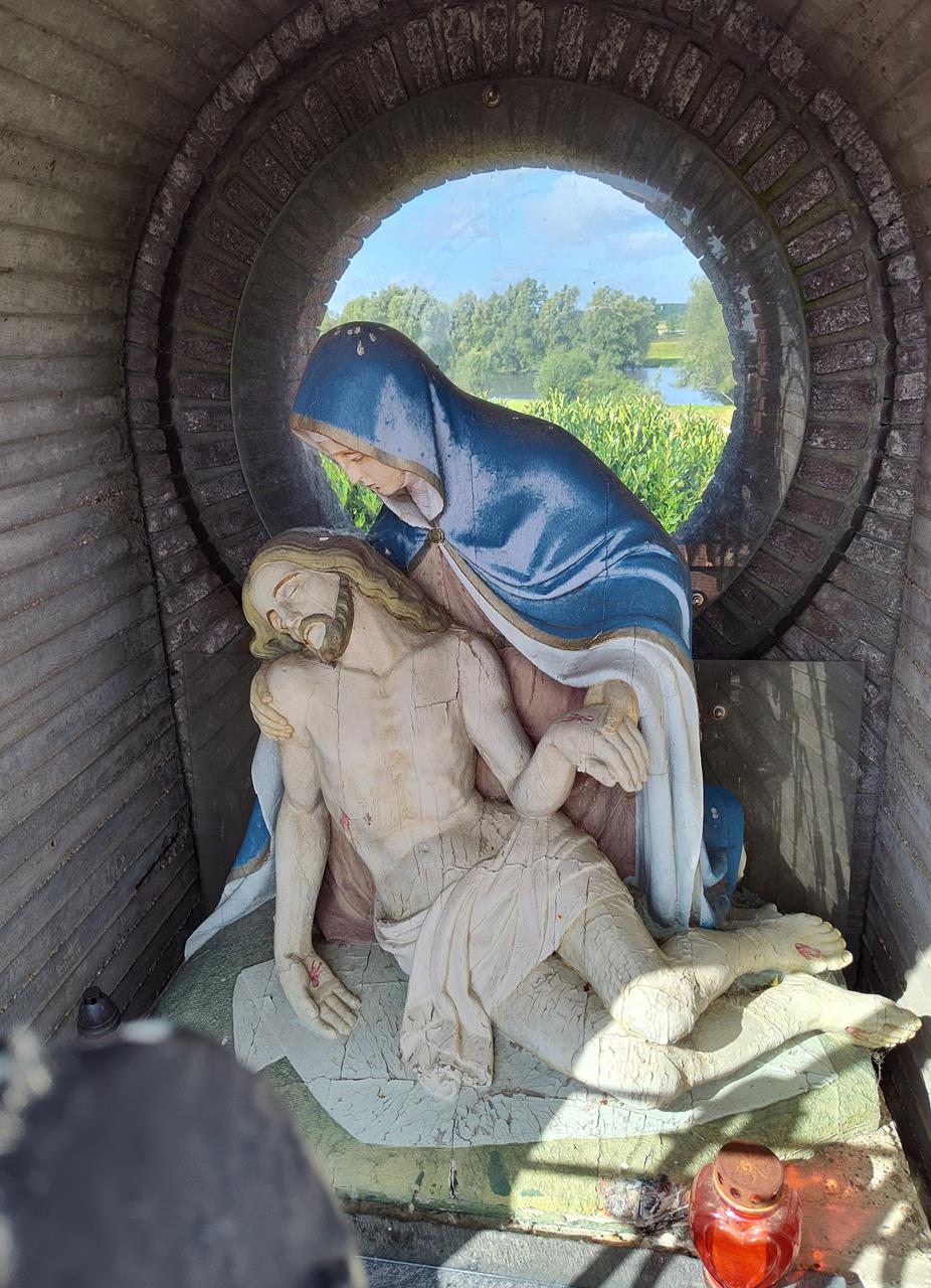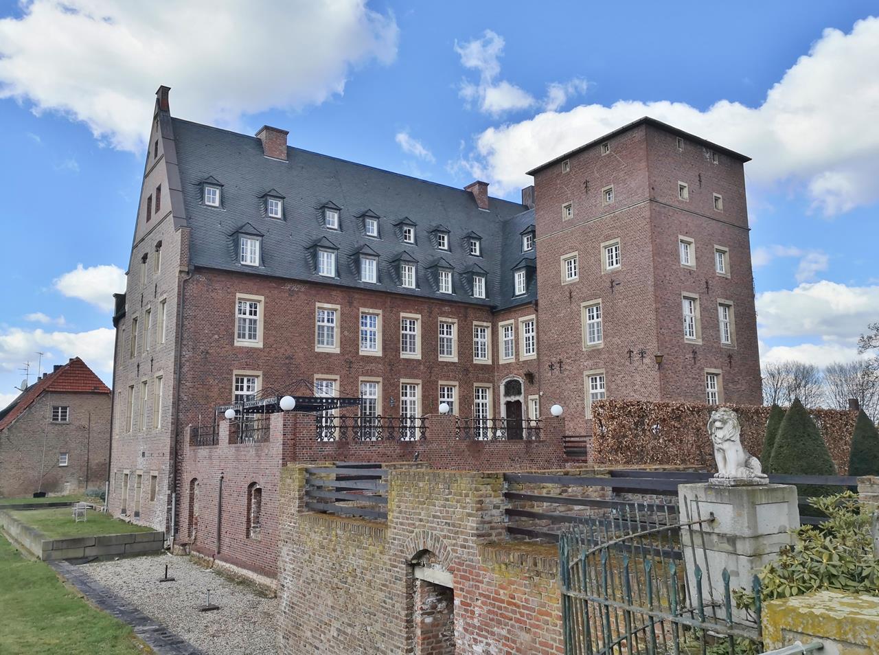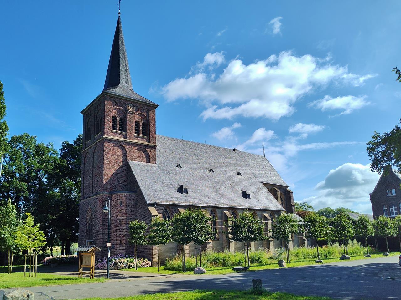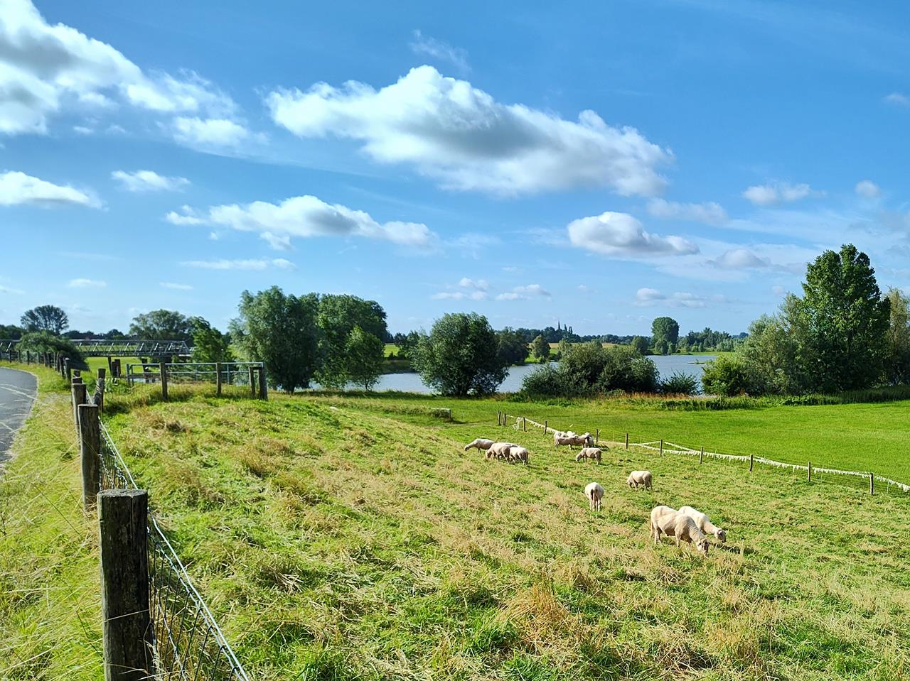 Ich bin mit Doxi unterwegs auf der Storchenroute von Bislich am nördlichen Niederrhein gegenüber von Xanten. Die 10 km lange Tour führt uns vorbei an mehreren Storchennestern in der Nähe der Feuchtwiesen am Rhein.Überall sehe ich in den Nestern drei oder vier Nachwuchsstörche, die jetzt im Juli fast schon so groß sind wie ihre Eltern. Bald werden sie zum ersten Male fliegen und dann spätestens Ende August ihr Nest verlassen.