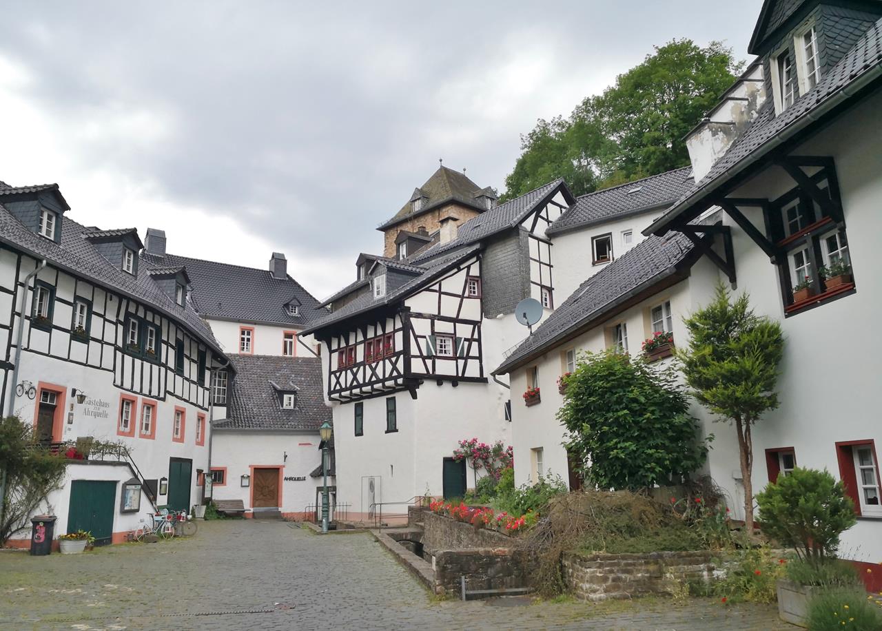 Unsere letzte Station auf dieser zehntägigen Reise durch die Eifel und angrenzende Regionen im Süden und Westen ist Blankenheim. Dort entspringt die Ahr. Die Gegend ist ein Wanderparadies mit teils herrlichen Fernblicken Richtung Ahreifel zum Aremberg, der Hohen Acht und der Nürburg am Horizont.