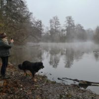 Als ich mit Doxi nach rund zweieinhalb Stunden das Seeende am Nordufer erreiche, sind bereits dunkle Wolken aufgezogen und in der Ferne grummelt es. Ich mache mir etwas Sorgen, denn unser Rückweg führt durch ausgedehnte Waldgebiete mit wenig Schutzmöglichkeiten. Aber das Wetterradar signalisiert, dass die Gewitterfront noch ein gutes Stück entfernt liegt.