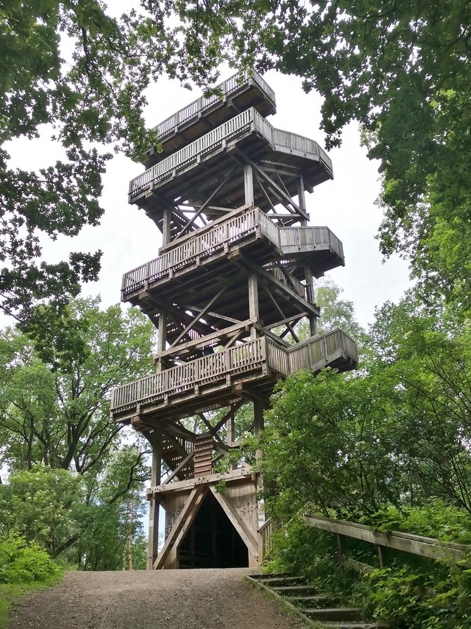 Wir sind bei ständig steigenden Temperaturen rund vier Stunden auf der Tour unterwegs und passieren dabei einige der bekannten Sehenswürdigkeiten, darunter die Wallreste der frühmittelalterlichen Dersaburg, den schönen und großen Dammer Bergsee und den Aussichtsturm auf dem Mordkuhlenberg.