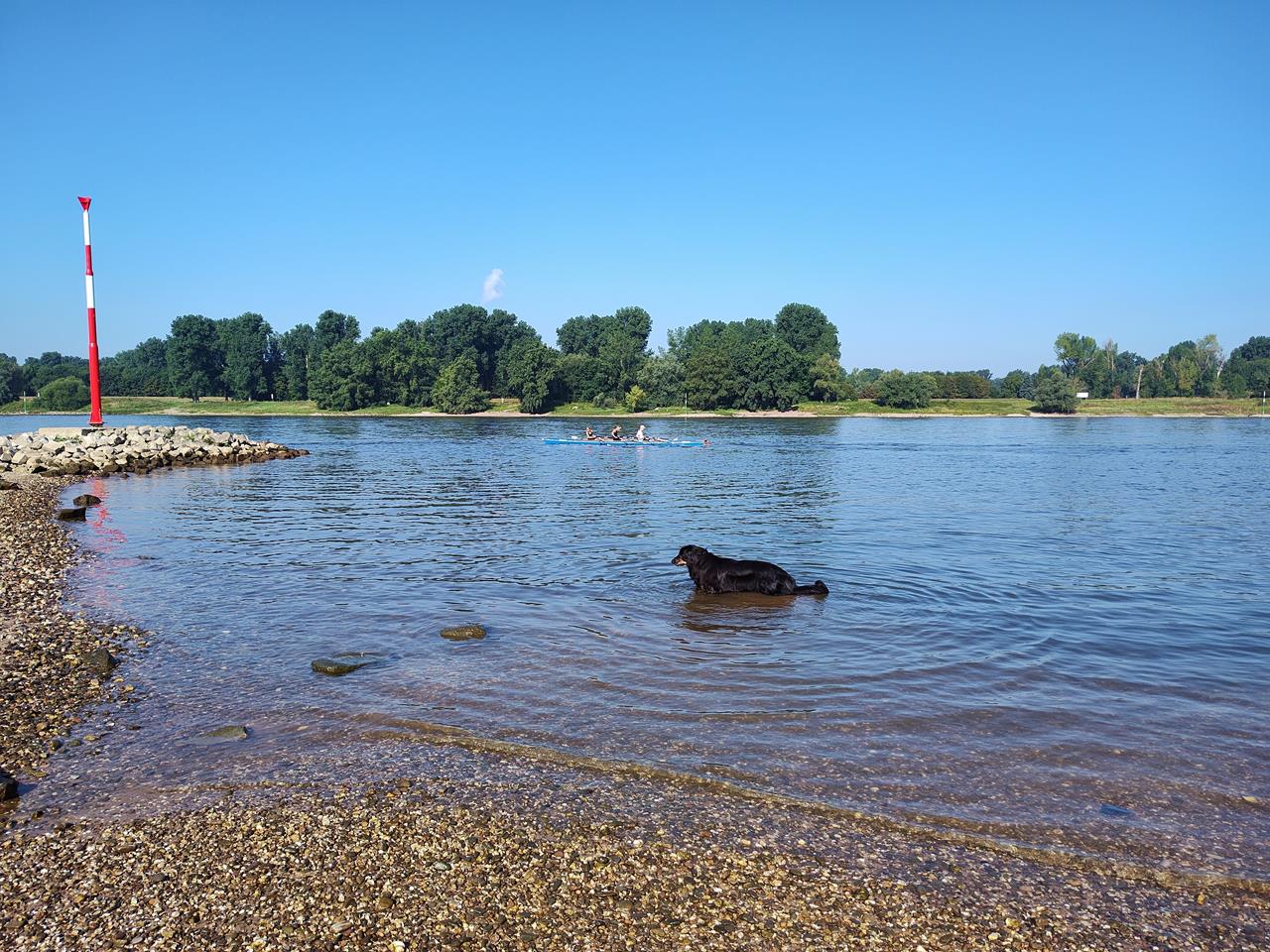 Wahnsinn, wie viele Menschen an einem Sonntagmorgen bereits um 9 Uhr am Rhein nahe des Benrather Schlossparks unterwegs sind. Alle wissen, dass es heute wieder heiß werden wird. Das treibt sie raus. Uns auch.