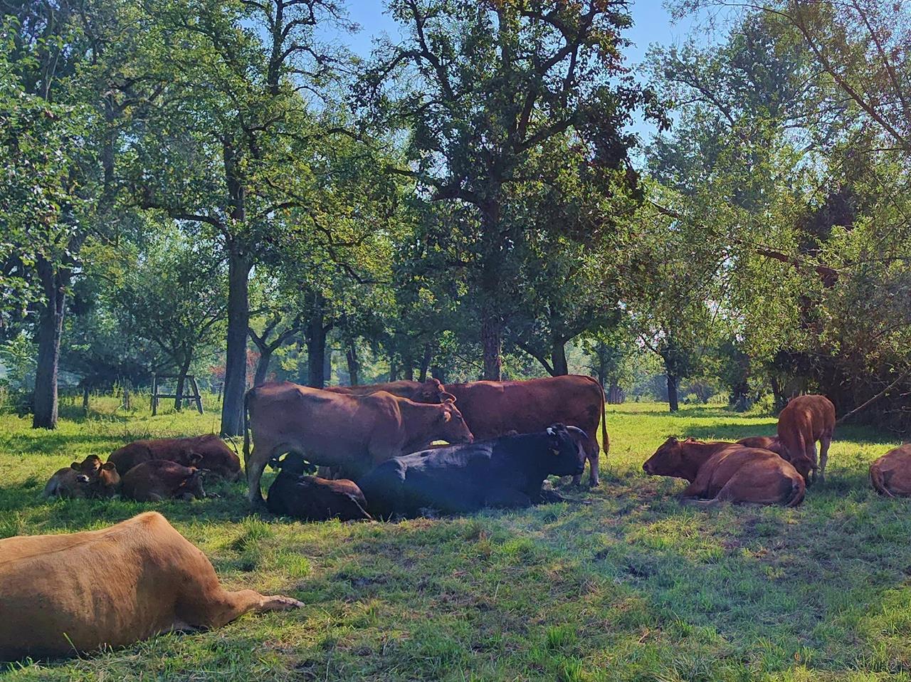 Im Schatten der Bäume ist es angenehm, aber auf den offenen Feldflächen bereits um 11 Uhr gefühlt deutlich zu heiß. Vor allem für Doxi. Gut, dass wir so früh gestartet sind, wie all die Anderen auch.