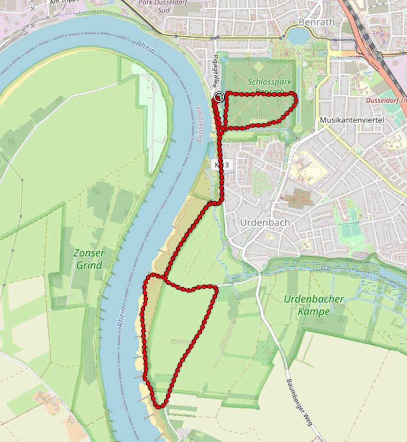 Wir drehen eine schöne Runde entlang des Rheinufers Richtung Zons auf der gegenüberliegenden Rheinseite. Anschließend laufen wir durch die Urdenbacher Kämpen zurück.