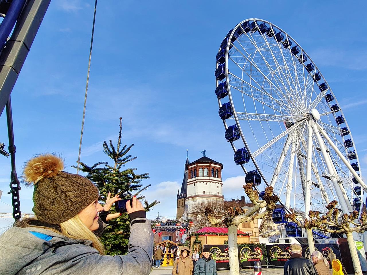 Von Roncallis romantischer Weihnachtspromenade am Rheinufer gehts zum Riesenrad auf dem Burglatz, weiter zum traditionsreichen Weihnachtsmarkt vor dem Rathaus und einmal quer durch die Altstadt rüber zum Adventsvergnügen mit Eislauffläche am Kö-Bogen. Die Märkte sind gut besucht, aber jetzt außerhalb des Wochenendes auch nicht übervoll. Was mir auffällt: Viele Touristen aus den Niederlanden sind in der Stadt unterwegs. Eeenendertig, tweeëndertig.