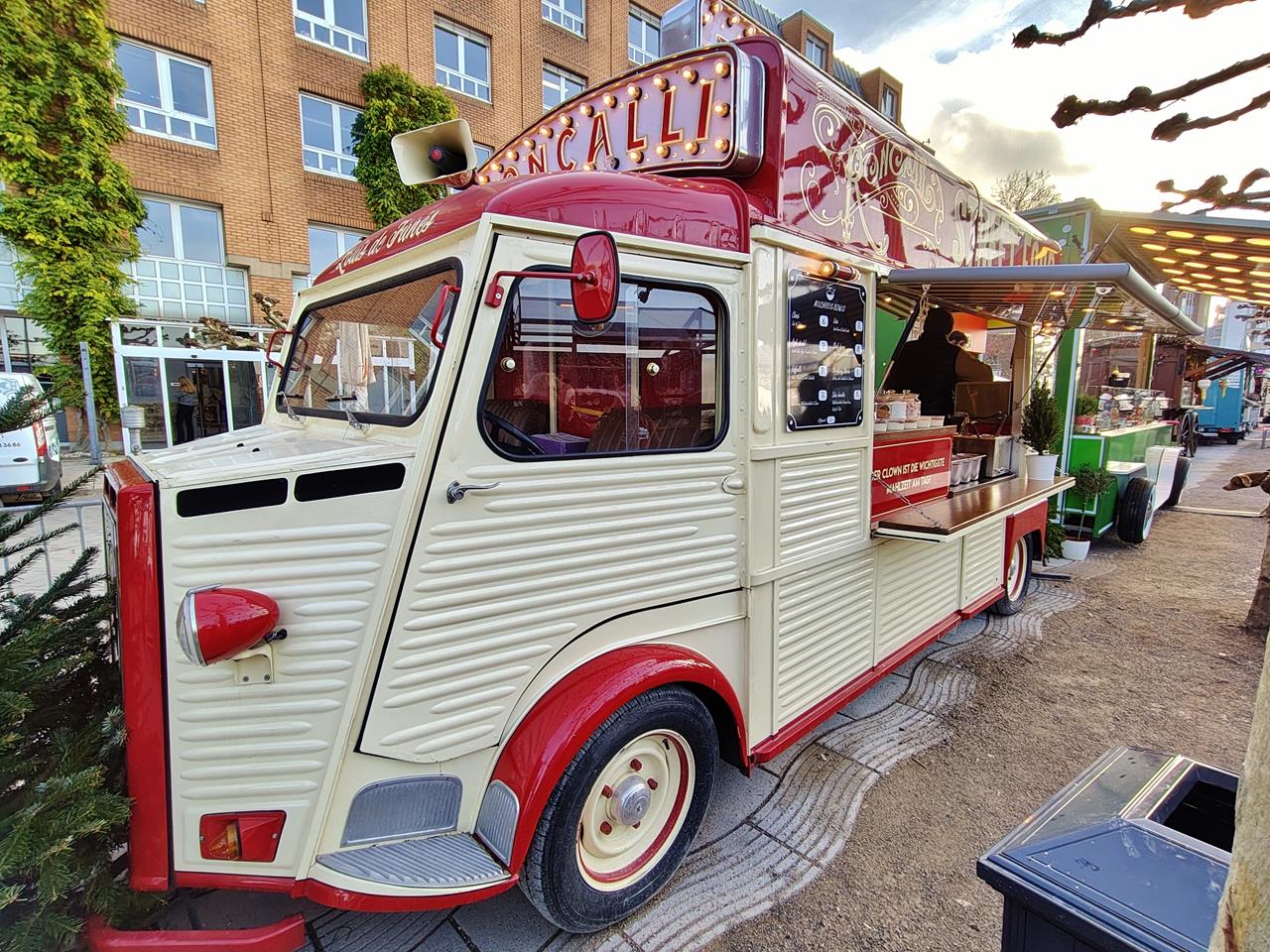 Im Mittelpunkt der Roncalli Weihnachtspromenade: Diverse historische Zirkusfahrzeuge aus Paul’s Sammlung, die zu Food-Trucks umfunktioniert wurden, sowie eine Reihe gläserner Pavillons („Orangerien“) als Verkaufsstände, Pop-Up-Restaurants und Biertheken – alle mit Blick auf den Rhein.