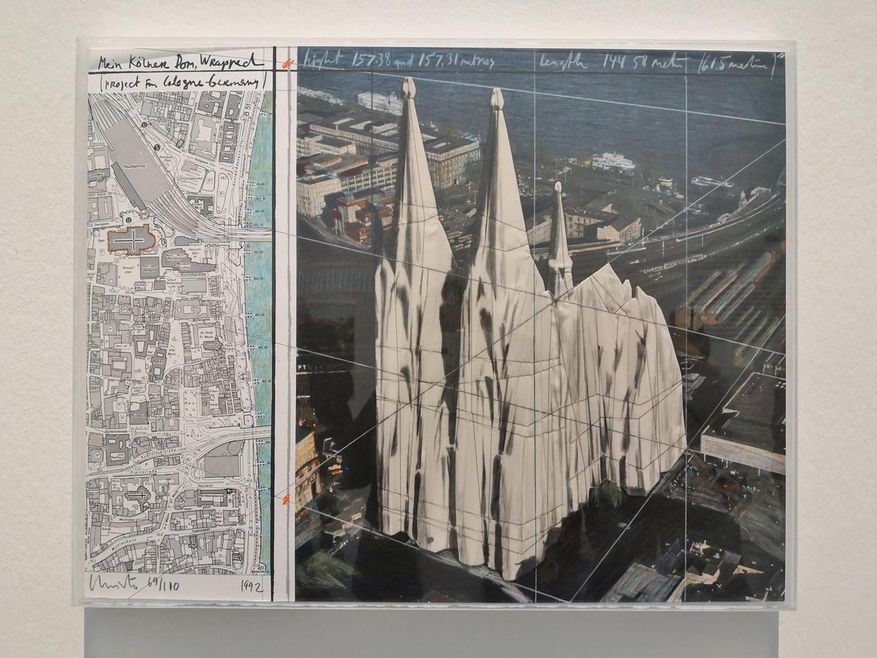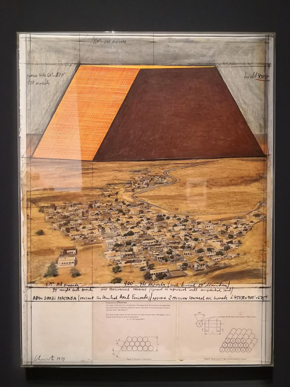 Gezeigt werden auch Zeichnungen und Skizzen von Projekten, die nicht zustande kamen, beispielsweise die Verhüllung des Kölner Doms oder das gigantische Projekt „Mastaba“ in Abu Dhabi. Dort wollten Christo und Jean Claude 410.000 Ölfässern zu einem Objekt auftürmen, dessen Dimensionen die Pyramide von Gizeh übertroffen hätte.