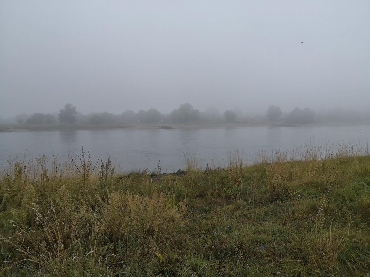 Wir sind mit Doxi am Düsseldorfer-Rheinknie unterwegs und können kaum bis zum anderen Ufer blicken, so dunstig ist die Luft.