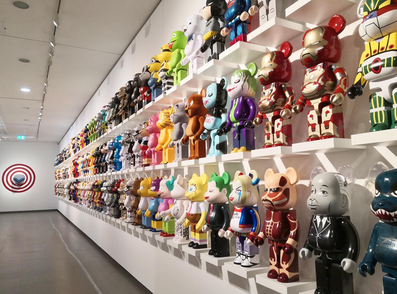 Eine fast endlose Wand identischer, aber unterschiedlich gestalteter Designer-Toys