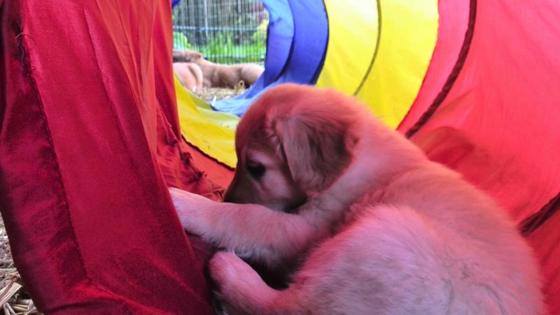 Debby wartet darauf, dass ihre Wurfgeschwister endlich aus der Garage kommen
