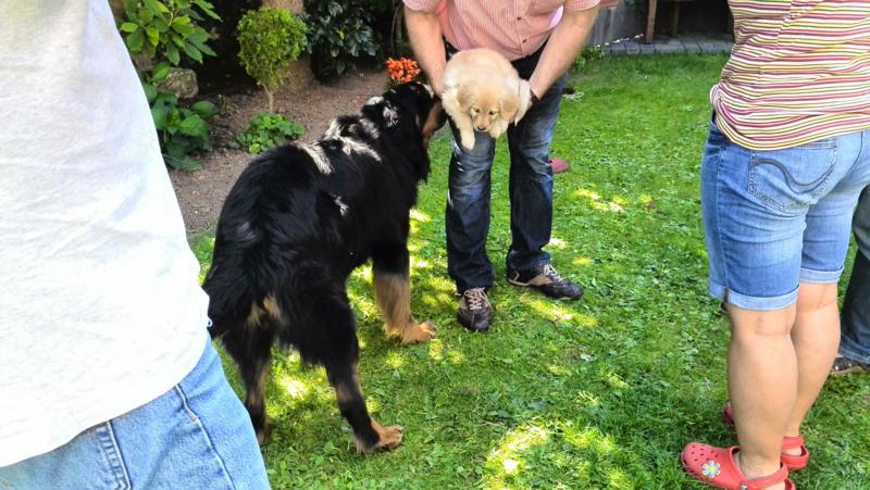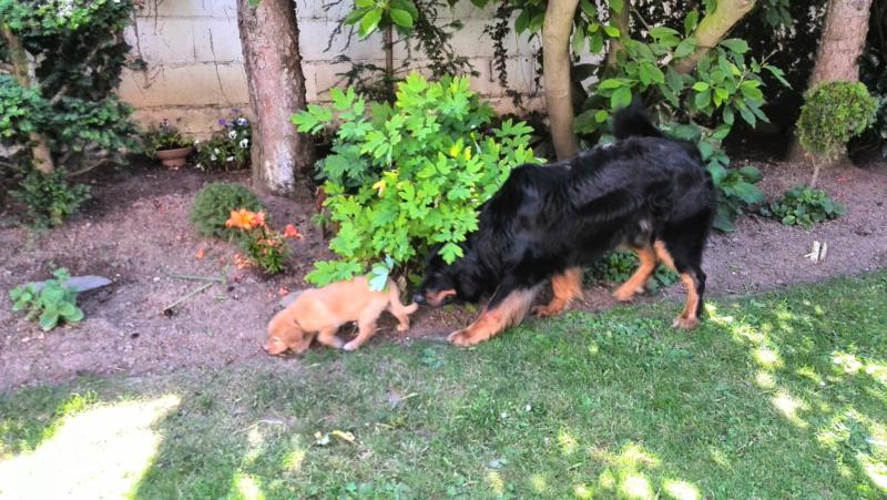 Kein anderer Welpe hat bereits so ein Tempo drauf, wie auch das folgende Video zeigt. Es ist gar nicht so leicht, ihr zu entkommen. Gut, dass ihr zukünftiger Garten noch ein wenig größer sein wird, als der unsrige. Da kann sie schön ihre Runden drehen 🙂