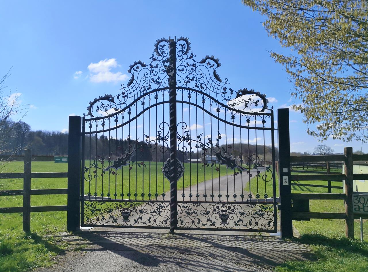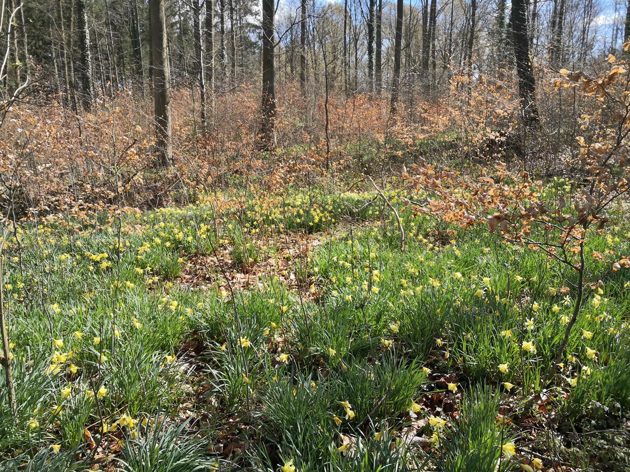 Die Tour verläuft im ersten Teil viel über eingezäunte Weideflächen, die nach den nassen Märzwochen unglaublich feucht sind. Das gilt auch für die angrenzenden Wald- und Hohlwege. Teilweise stehen wir knöcheltief im Matsch.Doxi gefällt das, aber ich habe mitunter Schwierigkeiten, festen Halt zu finden. Und so ergeht es auch anderen Wanderern, denen wir auf dieser Tour begegnen.
