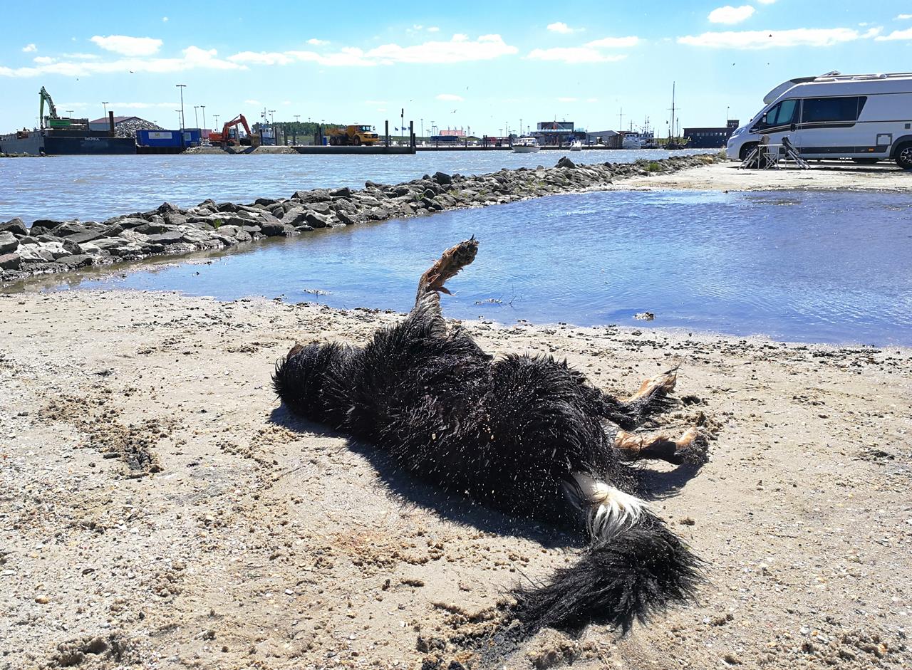 Hunde sind dort nur in einem kleinen Abschnitt direkt an der Fahrrinne Richtung Wangerooge erlaubt. Aber das eröffnet uns immerhin einen Blick auf die ein- und auslaufenden Schiffe.